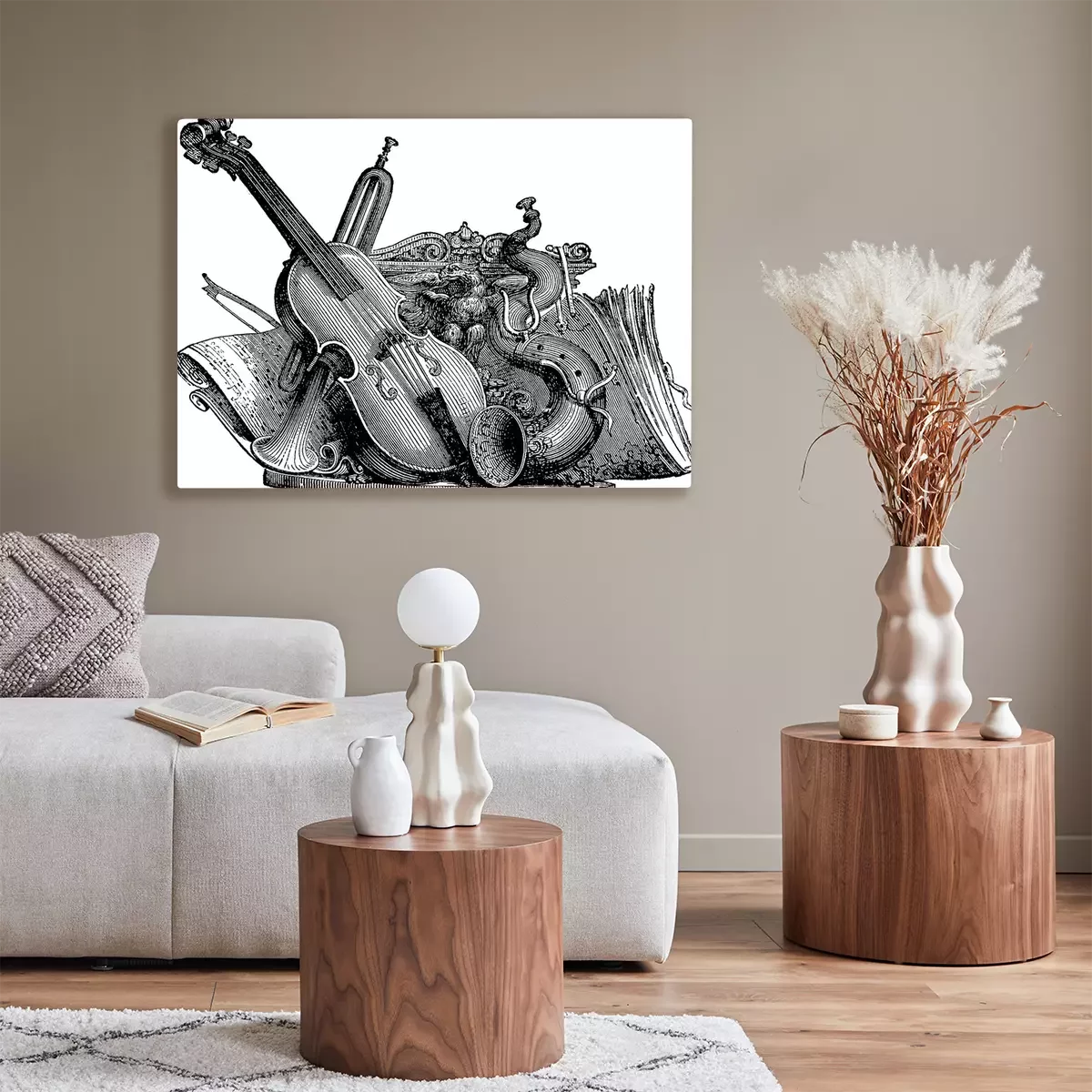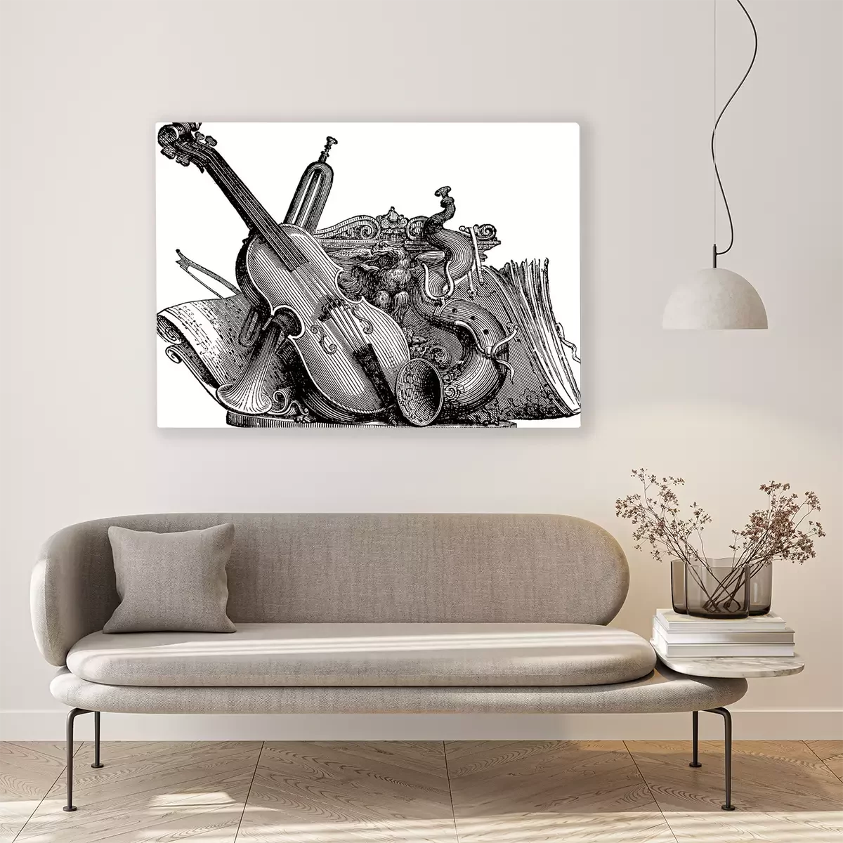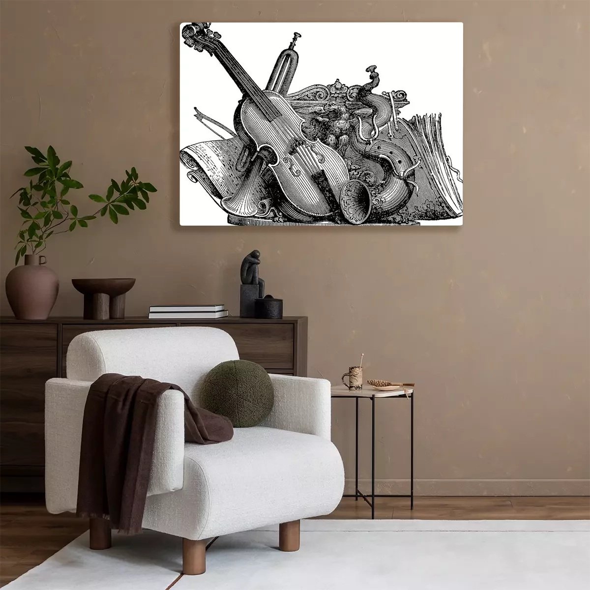 Canvas: muziekinstrumenten Vintage tekening