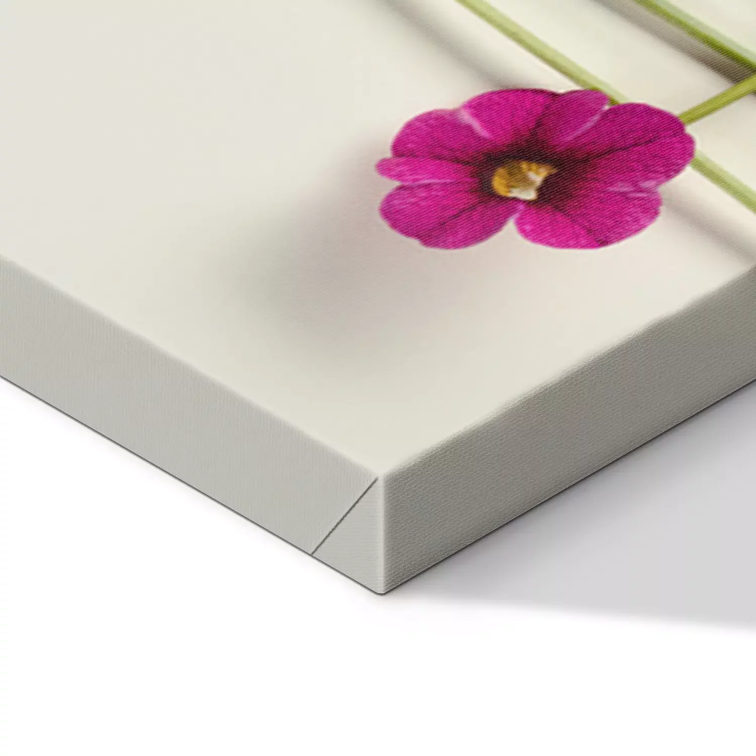 De print wordt aangebracht op hoogwaardig canvas dat op een schildersweefgetouw (spieraam) wordt gespannen. Omdat de print de zijranden bedekt, hoeft het ontwerp niet met een extra kader te worden omlijst. Wij raden ook composities aan die uit meerdere foto's bestaan en zo een coherente compositie vormen.