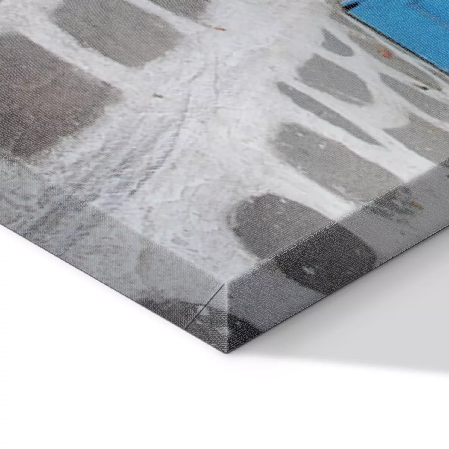 De print wordt aangebracht op hoogwaardig canvas dat op een schildersweefgetouw (spieraam) wordt gespannen. Omdat de print de zijranden bedekt, hoeft het ontwerp niet met een extra kader te worden omlijst. Wij raden ook composities aan die uit meerdere foto's bestaan en zo een coherente compositie vormen.