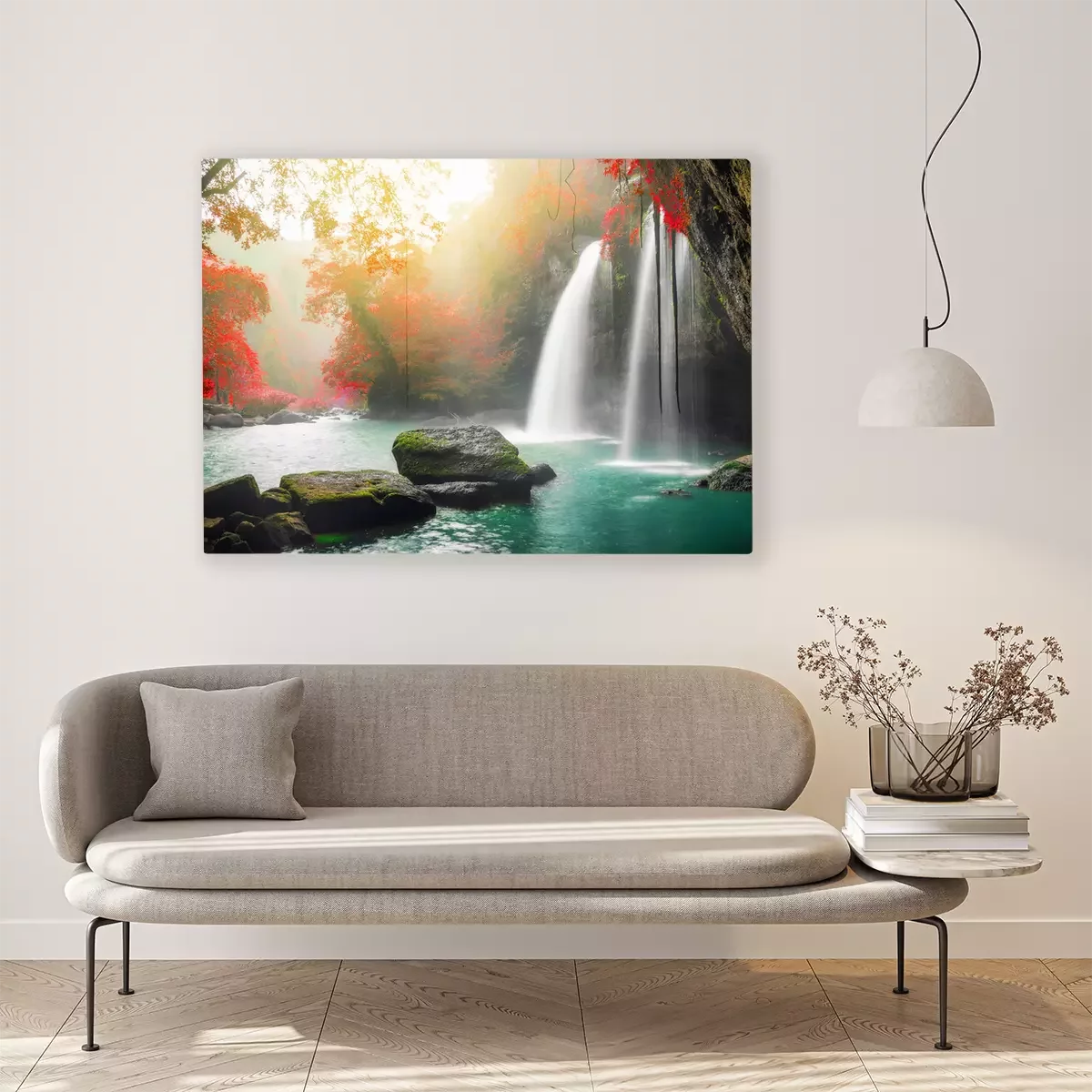 De print wordt aangebracht op hoogwaardig canvas dat op een schildersweefgetouw (spieraam) wordt gespannen. Omdat de print de zijranden bedekt, hoeft het ontwerp niet met een extra kader te worden omlijst. Wij raden ook composities aan die uit meerdere foto's bestaan en zo een coherente compositie vormen.