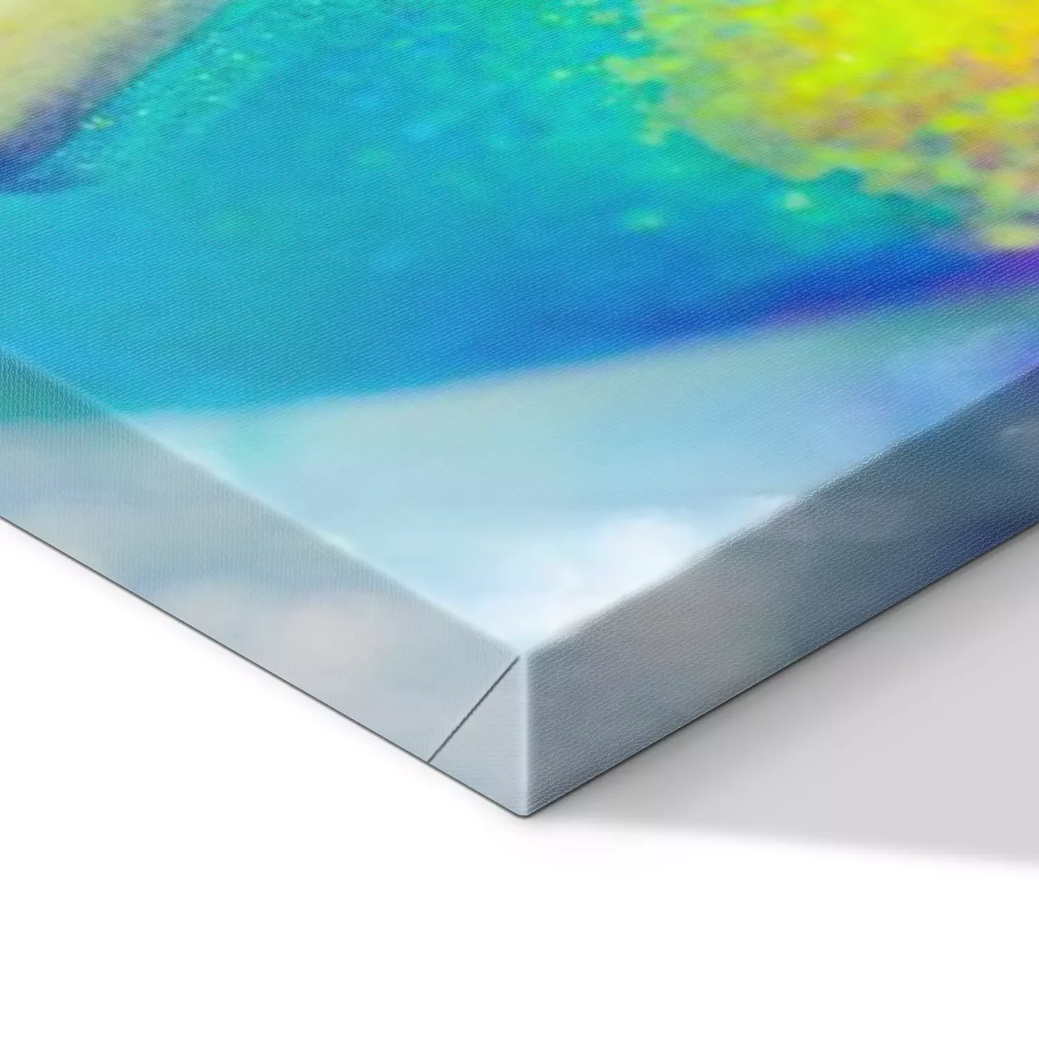 De print wordt aangebracht op hoogwaardig canvas dat op een schildersweefgetouw (spieraam) wordt gespannen. Omdat de print de zijranden bedekt, hoeft het ontwerp niet met een extra kader te worden omlijst. Wij raden ook composities aan die uit meerdere foto's bestaan en zo een coherente compositie vormen.