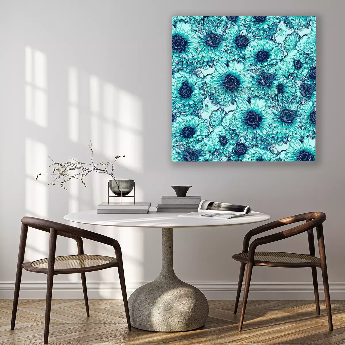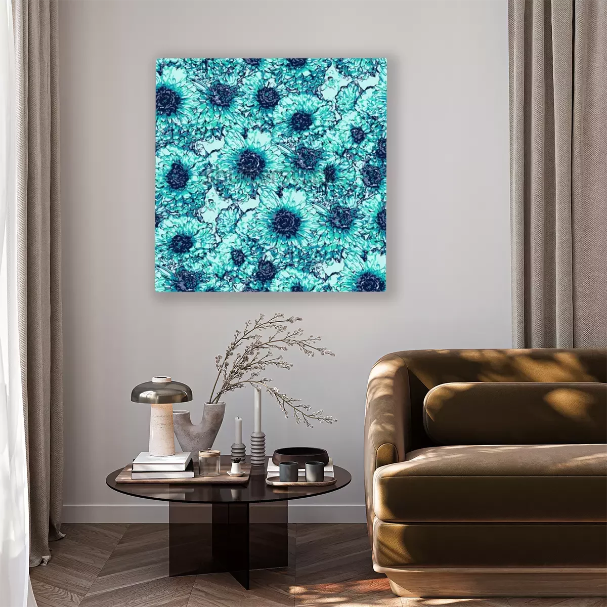 Canvas Naadloos patroon met turkooise chrysantenbloemen