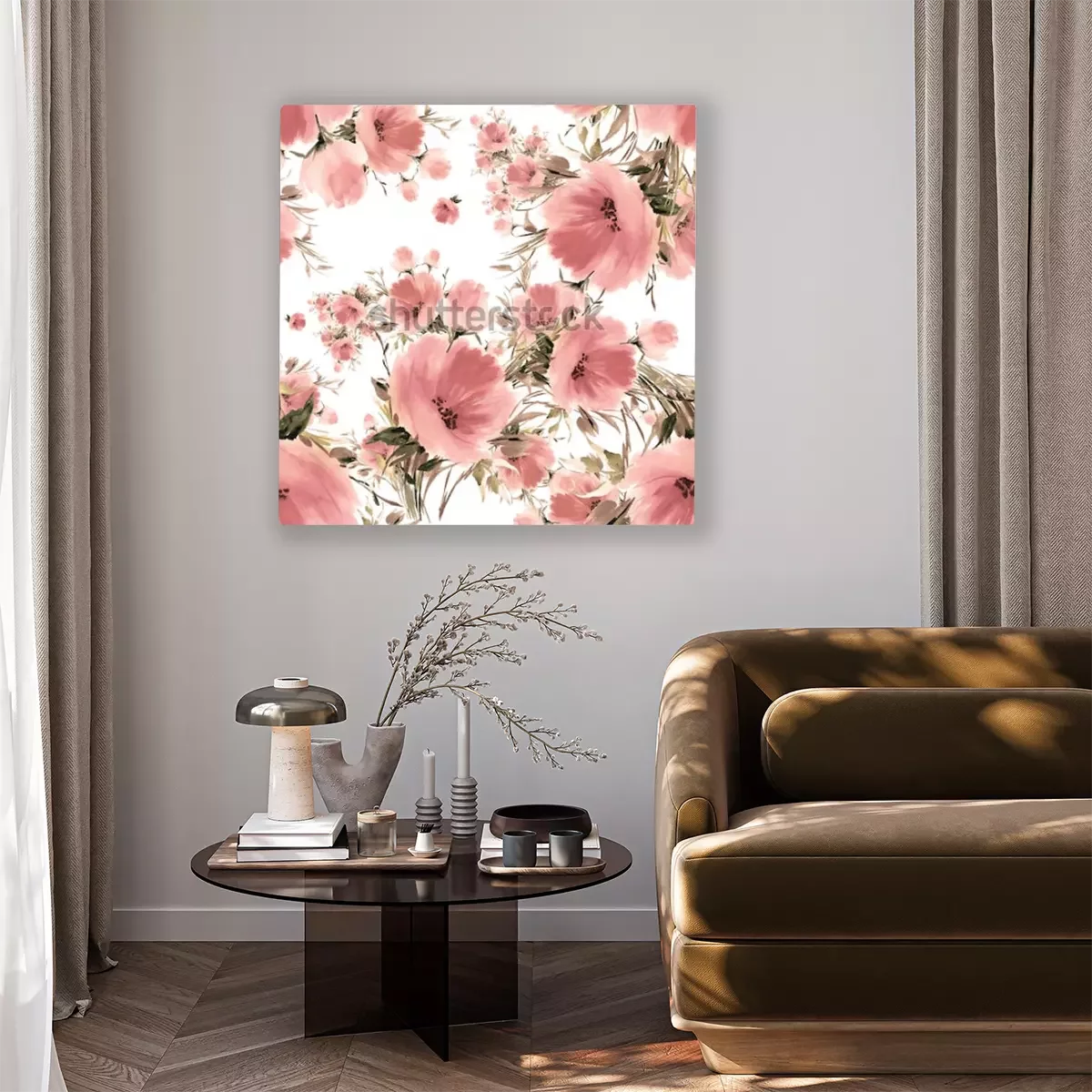 Canvas: Naadloze bloemboeketten-4 van de patroonwaterverf. Mooi patroon voor decoratie en ontwerp. Trendy print. Uitstekend patroon voor ontwerp van waterverfschetsen van de bloemen.
