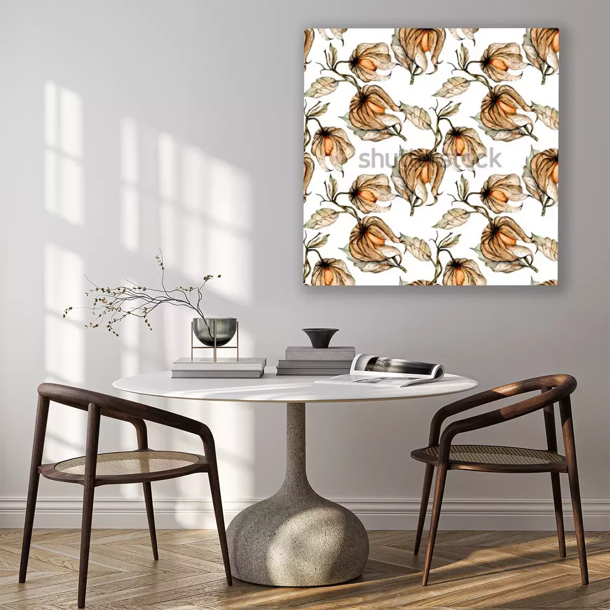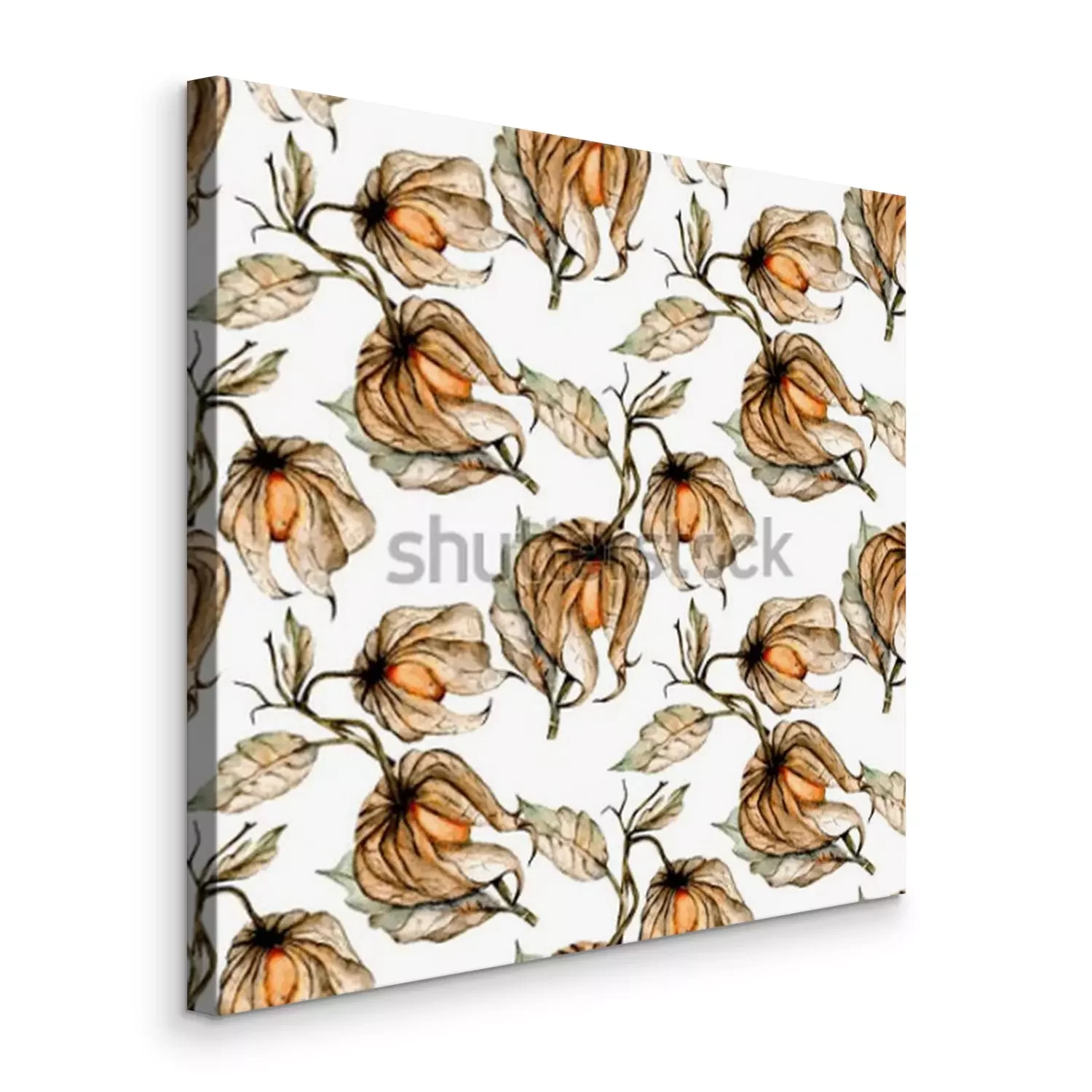Canvas: Naadloze bloemenpatroon met droge bloemenphysalis. Aquarel naadloze witte achtergrond. Stof behang print textuur. Perfect voor verpakt papier, bannerontwerp, lijst van rand. Hand getekend.