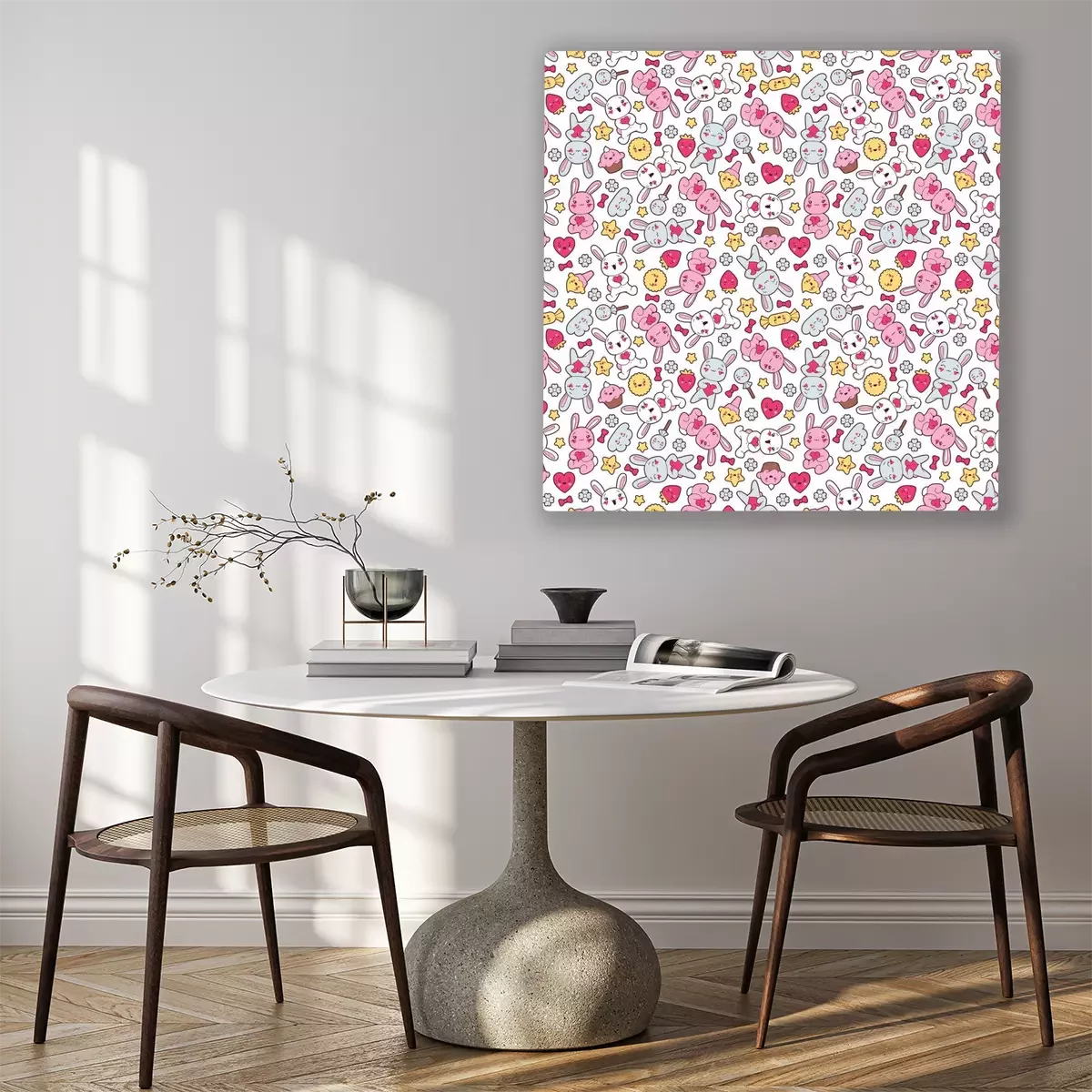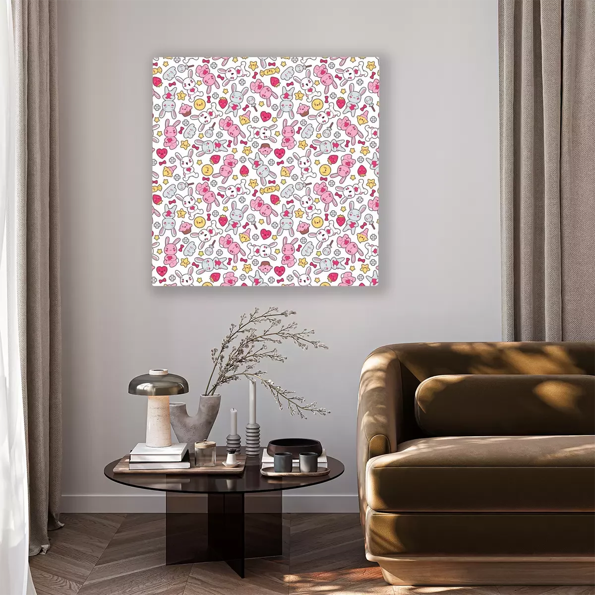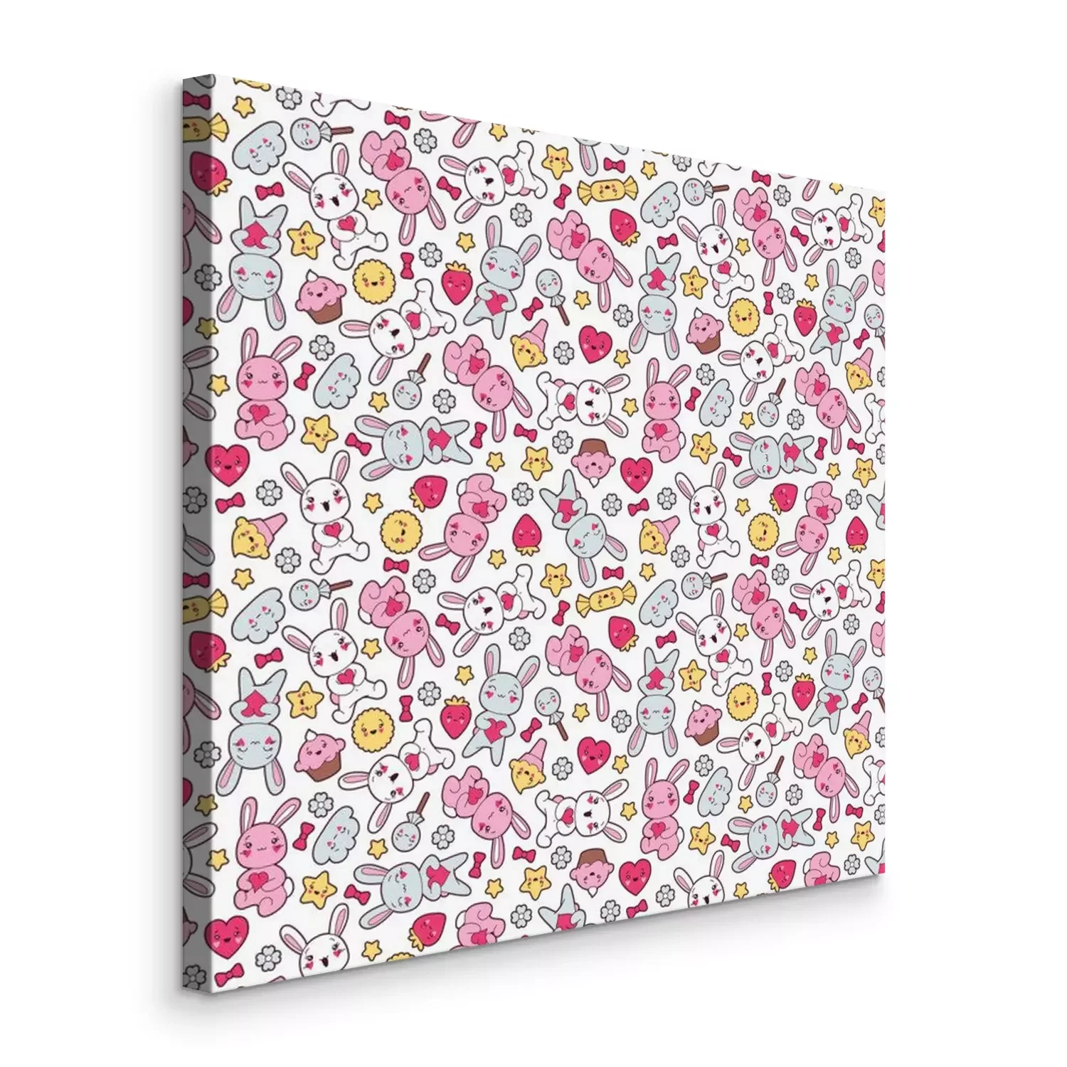 Canvas: Naadloze kawaii kind patroon met leuke krabbels.