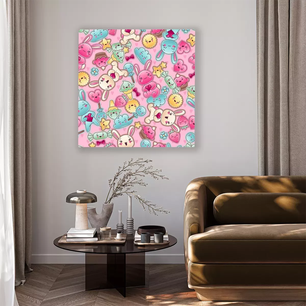 Canvas: Naadloze kawaii kind patroon met leuke krabbels.