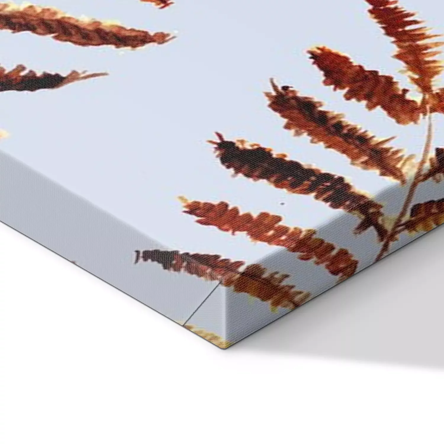 De print wordt aangebracht op hoogwaardig canvas dat op een schildersweefgetouw (spieraam) wordt gespannen. Omdat de print de zijranden bedekt, hoeft het ontwerp niet met een extra kader te worden omlijst. Wij raden ook composities aan die uit meerdere foto's bestaan en zo een coherente compositie vormen.