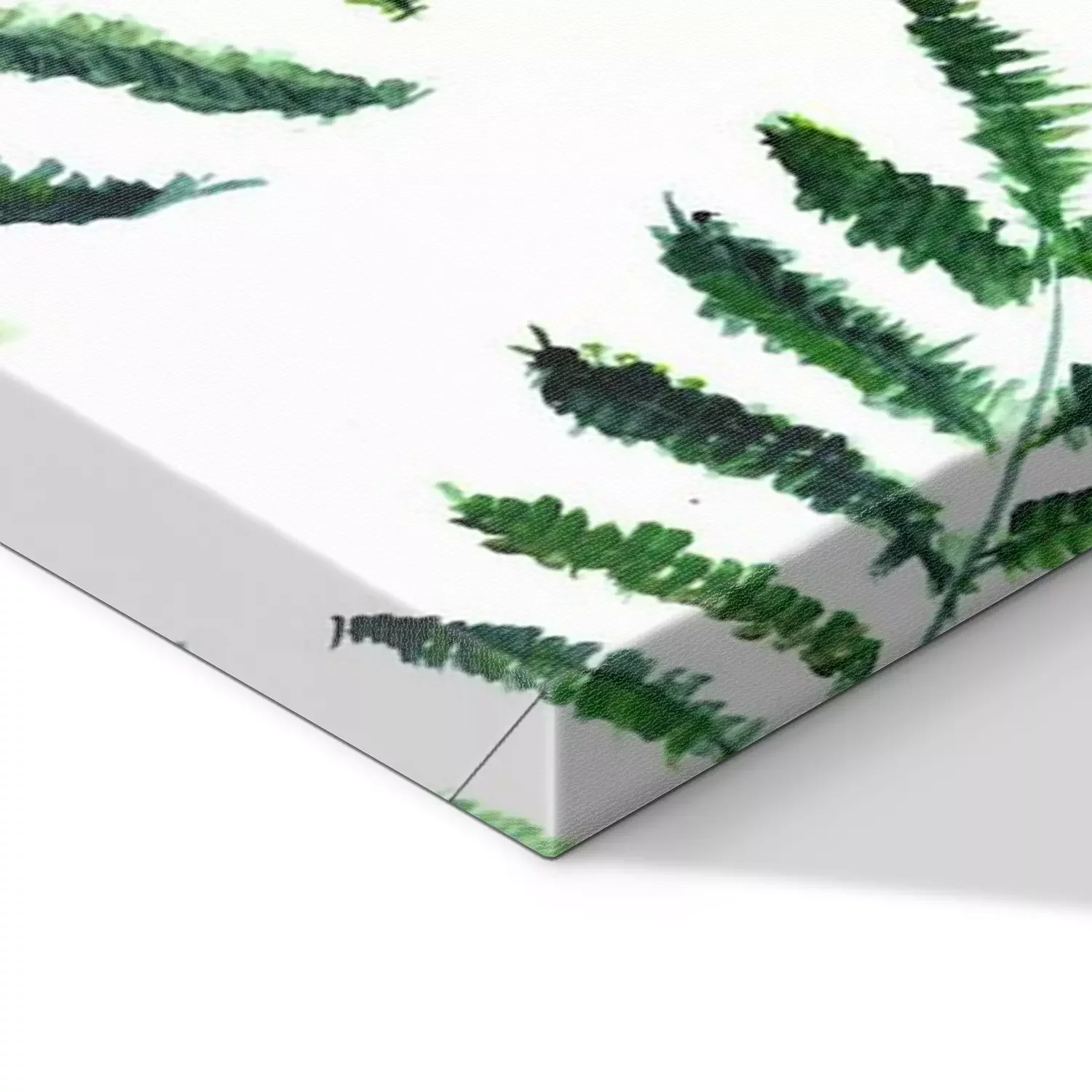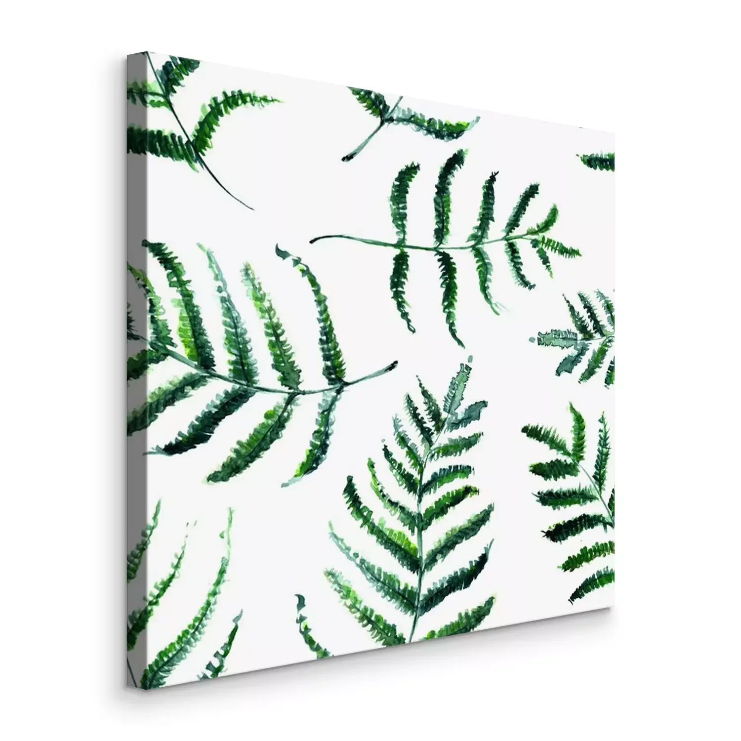 Canvas: Naadloze realistische aquarel groen patroon. Hand getrokken Fern bladeren en takken afdrukken. Zomer, lente bos kruiden, planten textuur. Gebladerte in vintage stijl. Natuur Eco vriendelijke Concept.