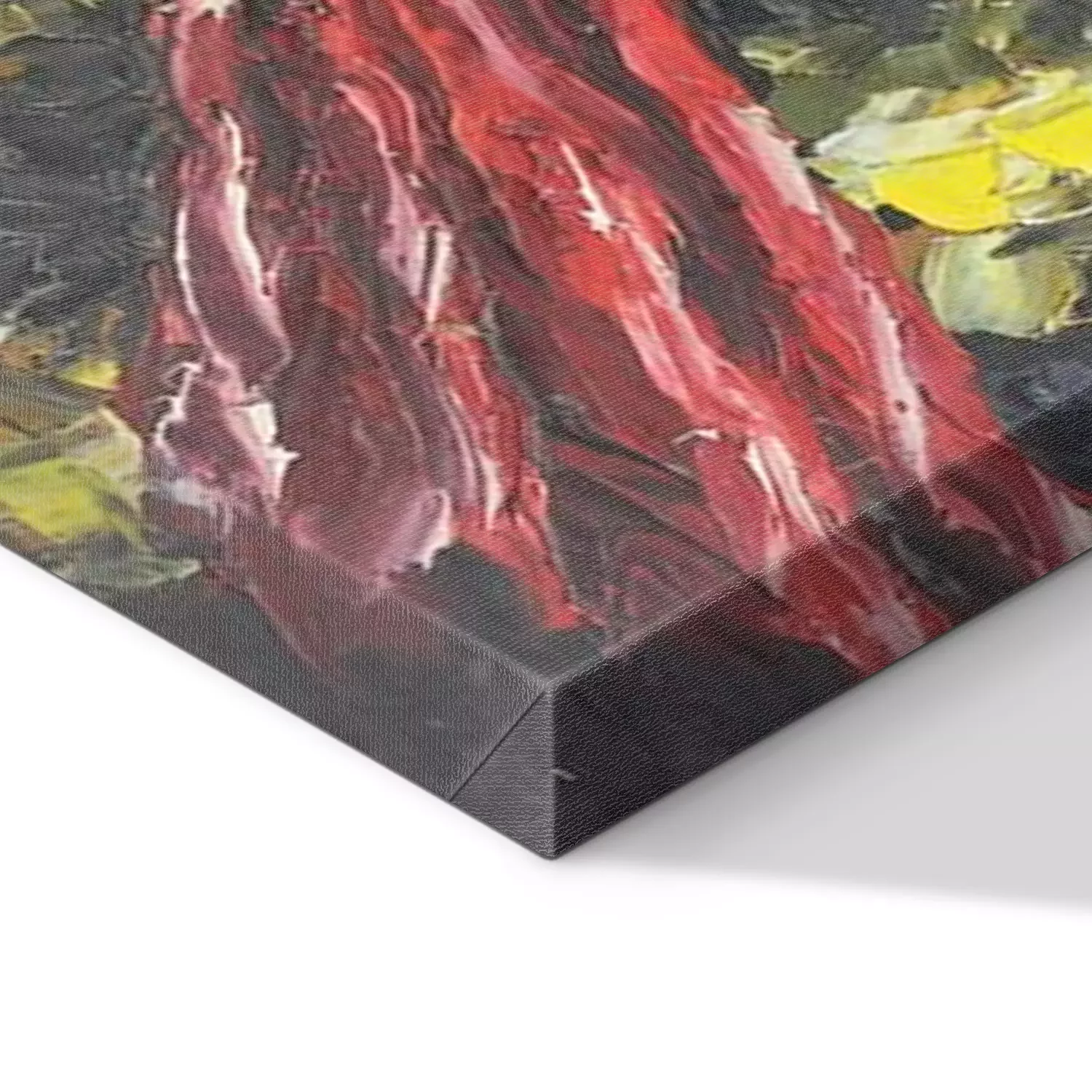 De print wordt aangebracht op hoogwaardig canvas dat op een schildersweefgetouw (spieraam) wordt gespannen. Omdat de print de zijranden bedekt, hoeft het ontwerp niet met een extra kader te worden omlijst. Wij raden ook composities aan die uit meerdere foto's bestaan en zo een coherente compositie vormen.