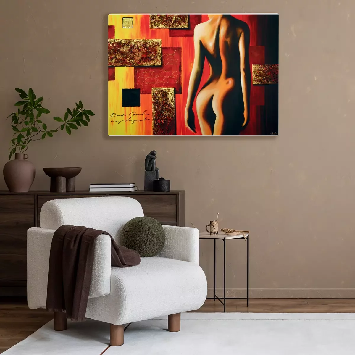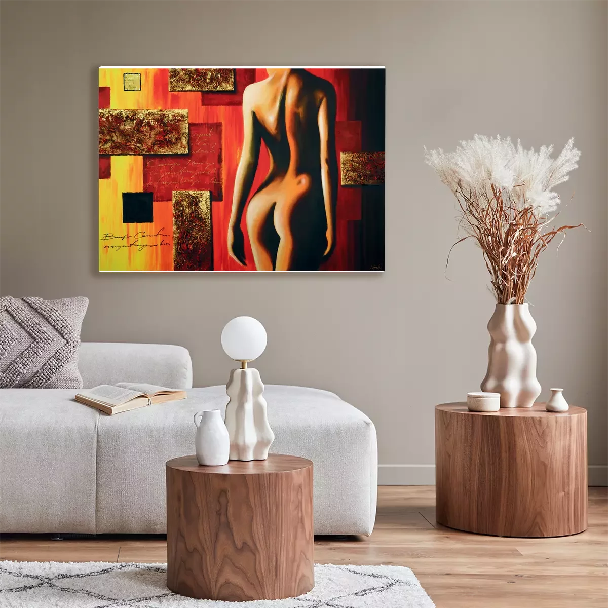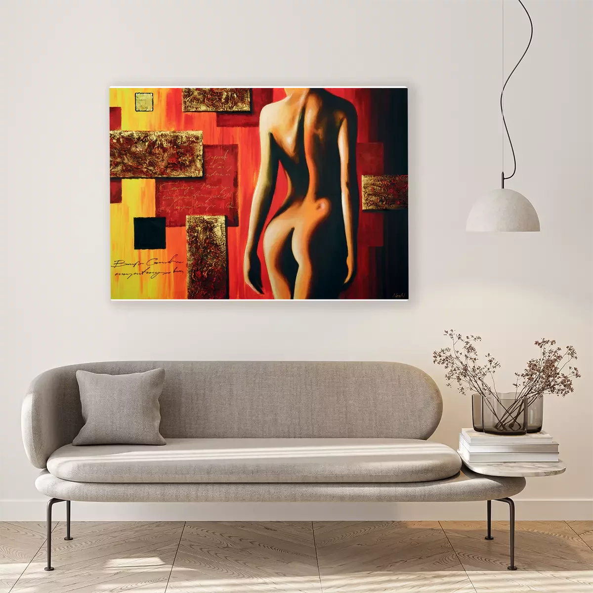 Naakt silhouet van een vrouw op een geometrische achtergrond