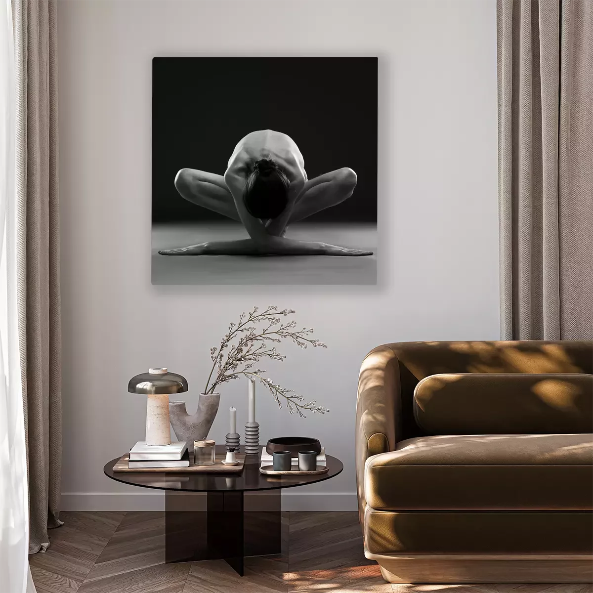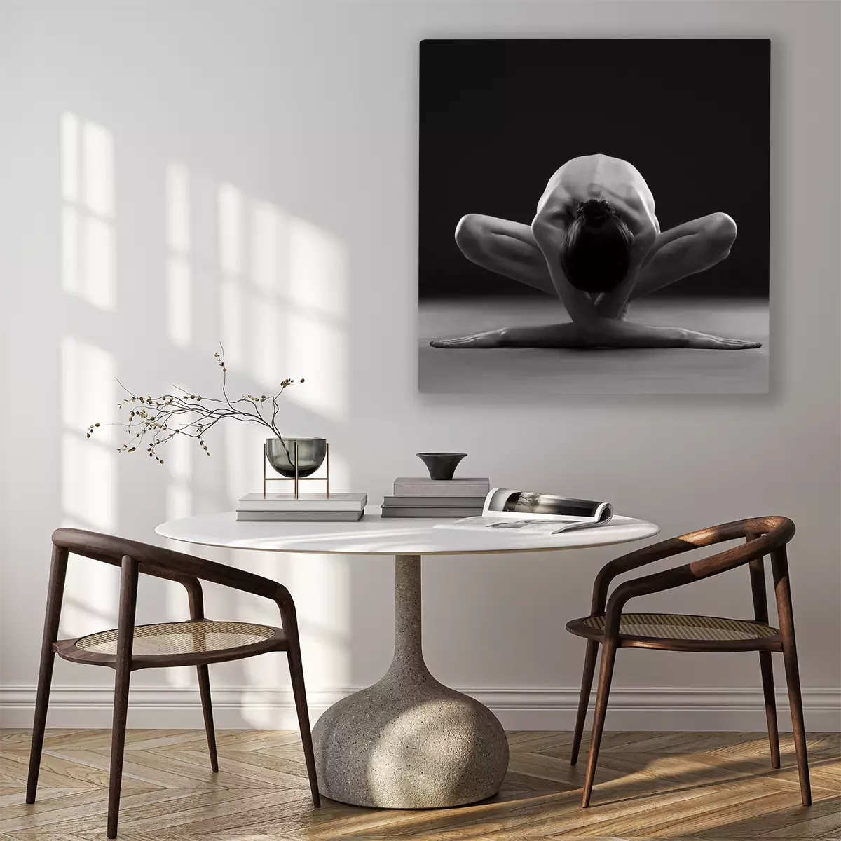 Canvas Naakt yoga. Mooie sexy lichaam van de jonge vrouw op zwarte achtergrond