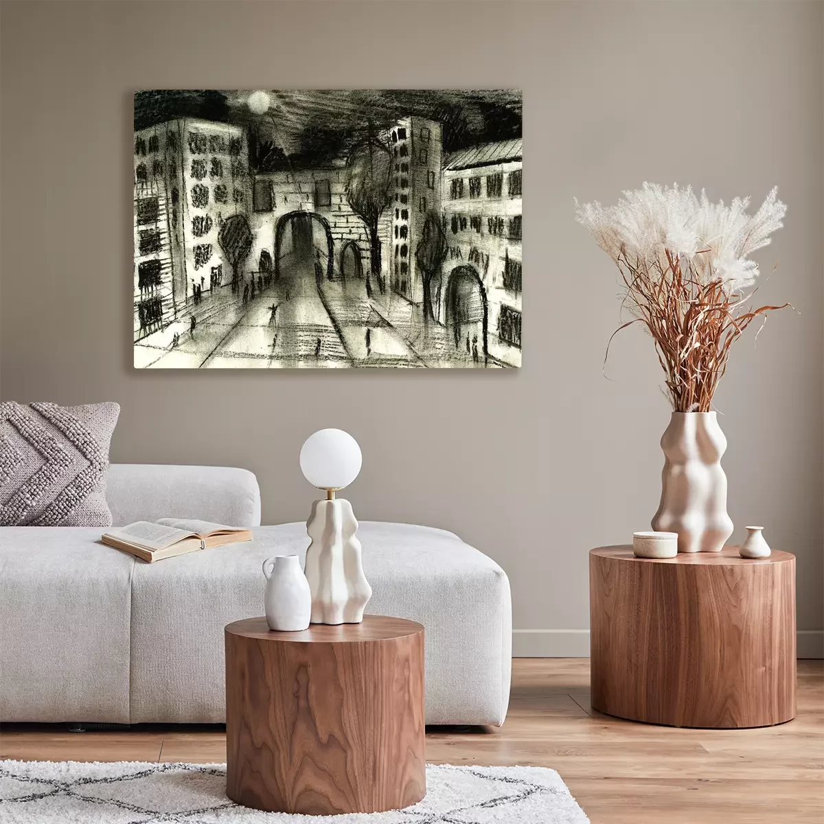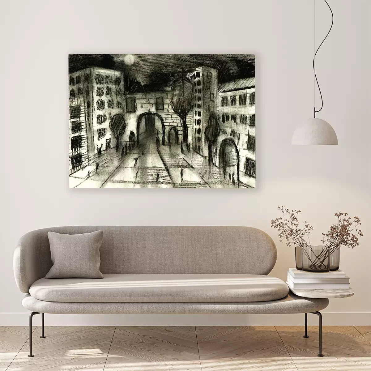 De print wordt aangebracht op hoogwaardig canvas dat op een schildersweefgetouw (spieraam) wordt gespannen. Omdat de print de zijranden bedekt, hoeft het ontwerp niet met een extra kader te worden omlijst. Wij raden ook composities aan die uit meerdere foto's bestaan en zo een coherente compositie vormen.