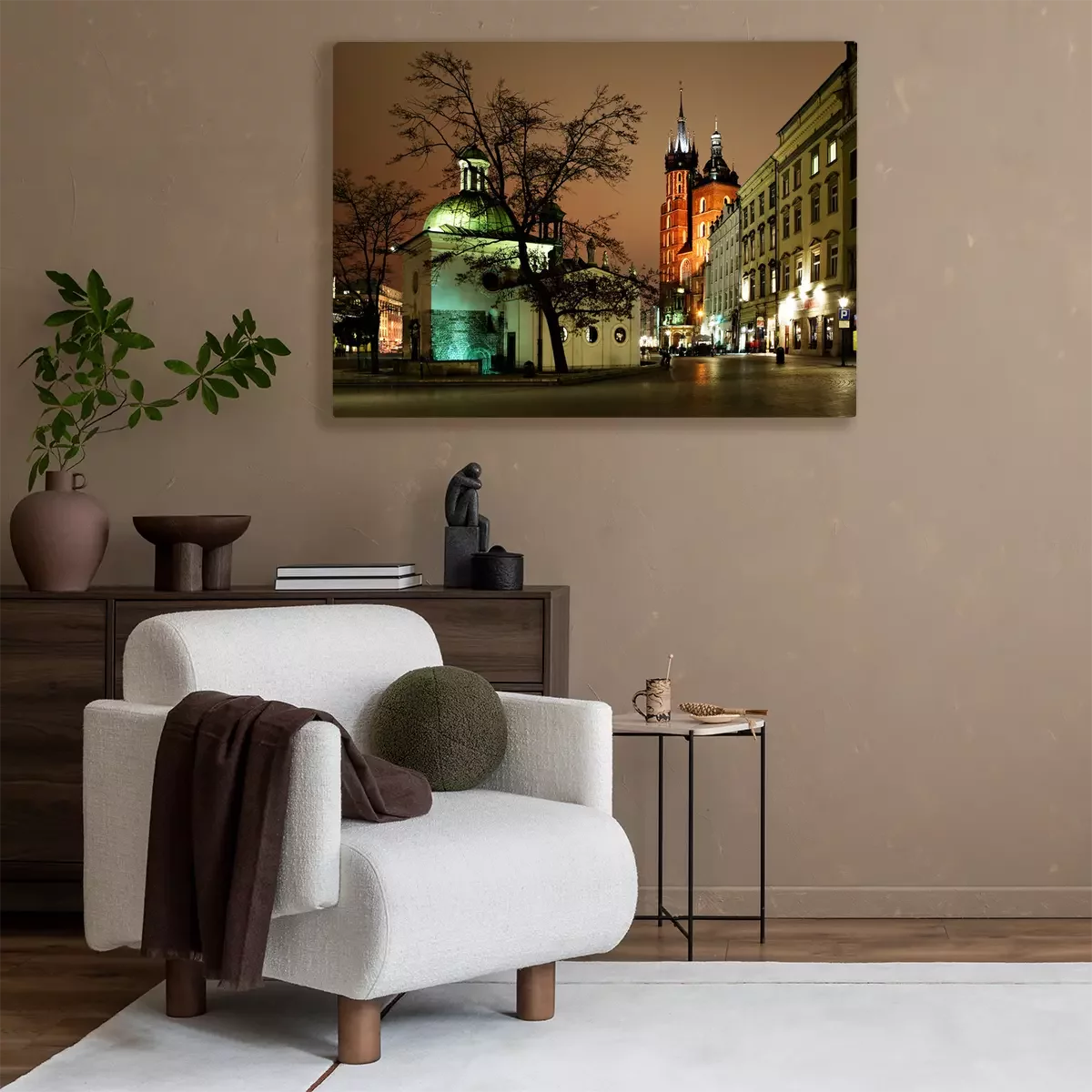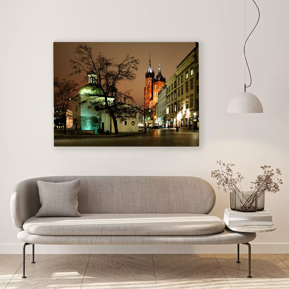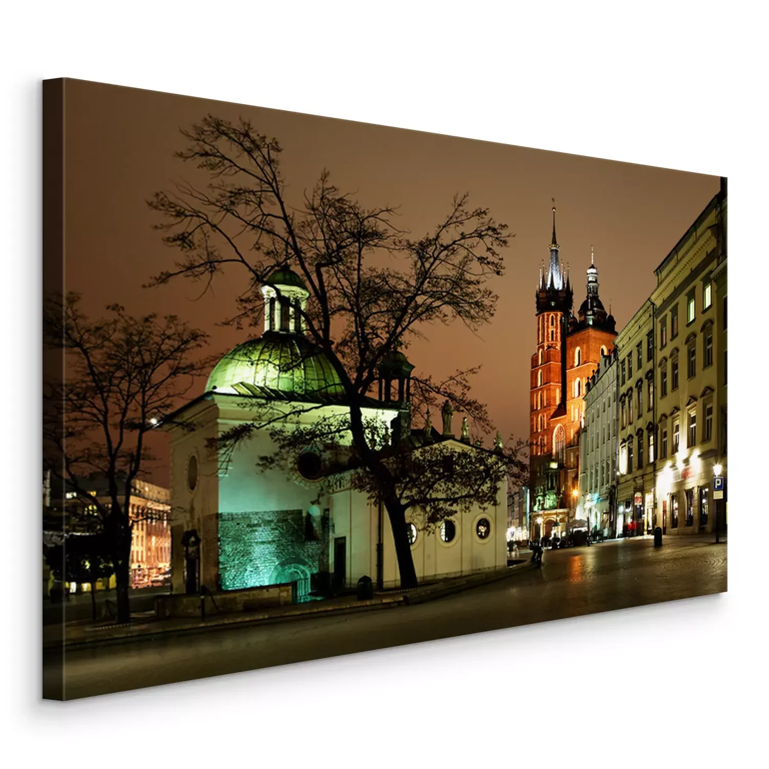Canvas: Nacht uitzicht van de Grote Markt in Krakau, Polen