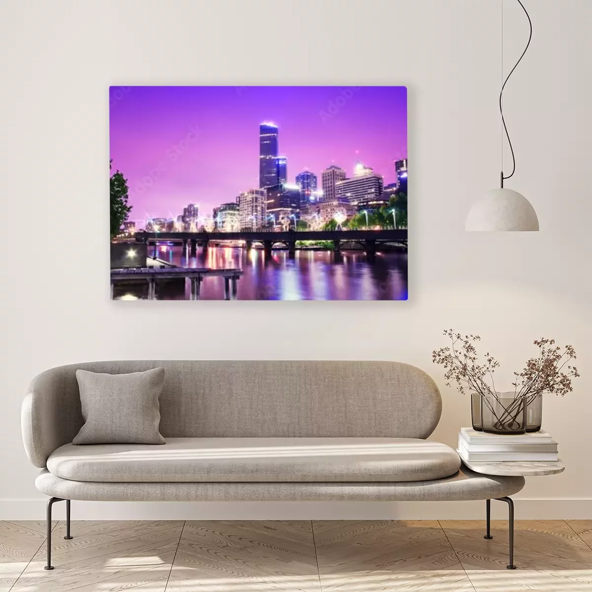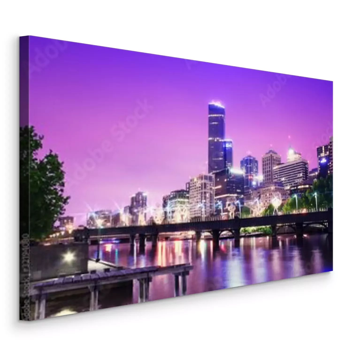 Canvas: Nacht Urban City Skyline. Melbourne. Australië