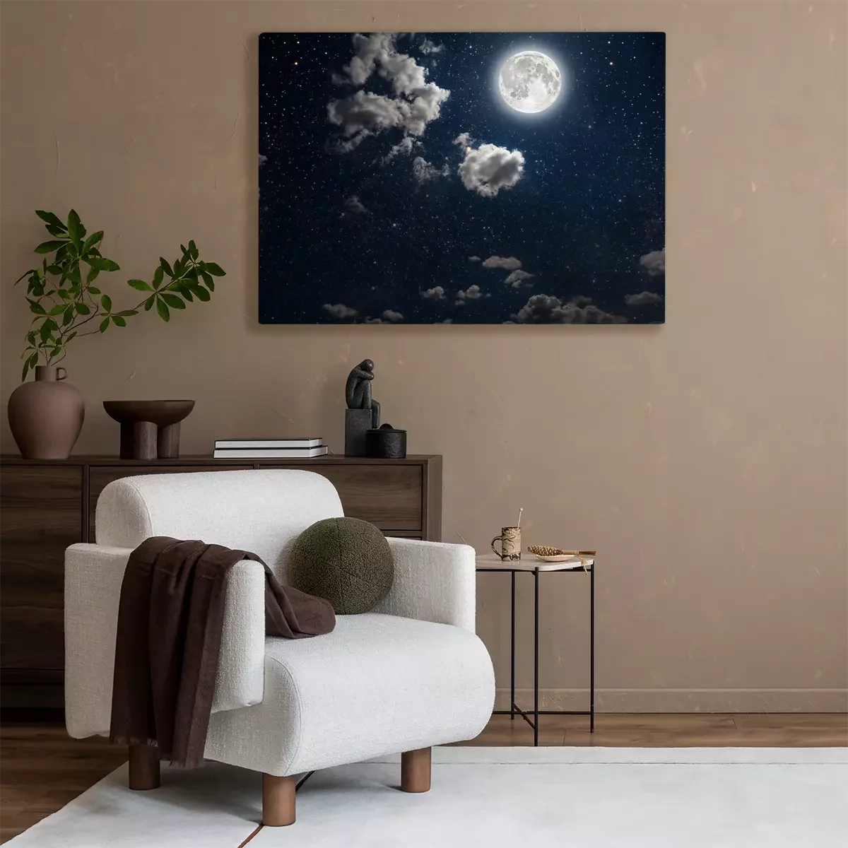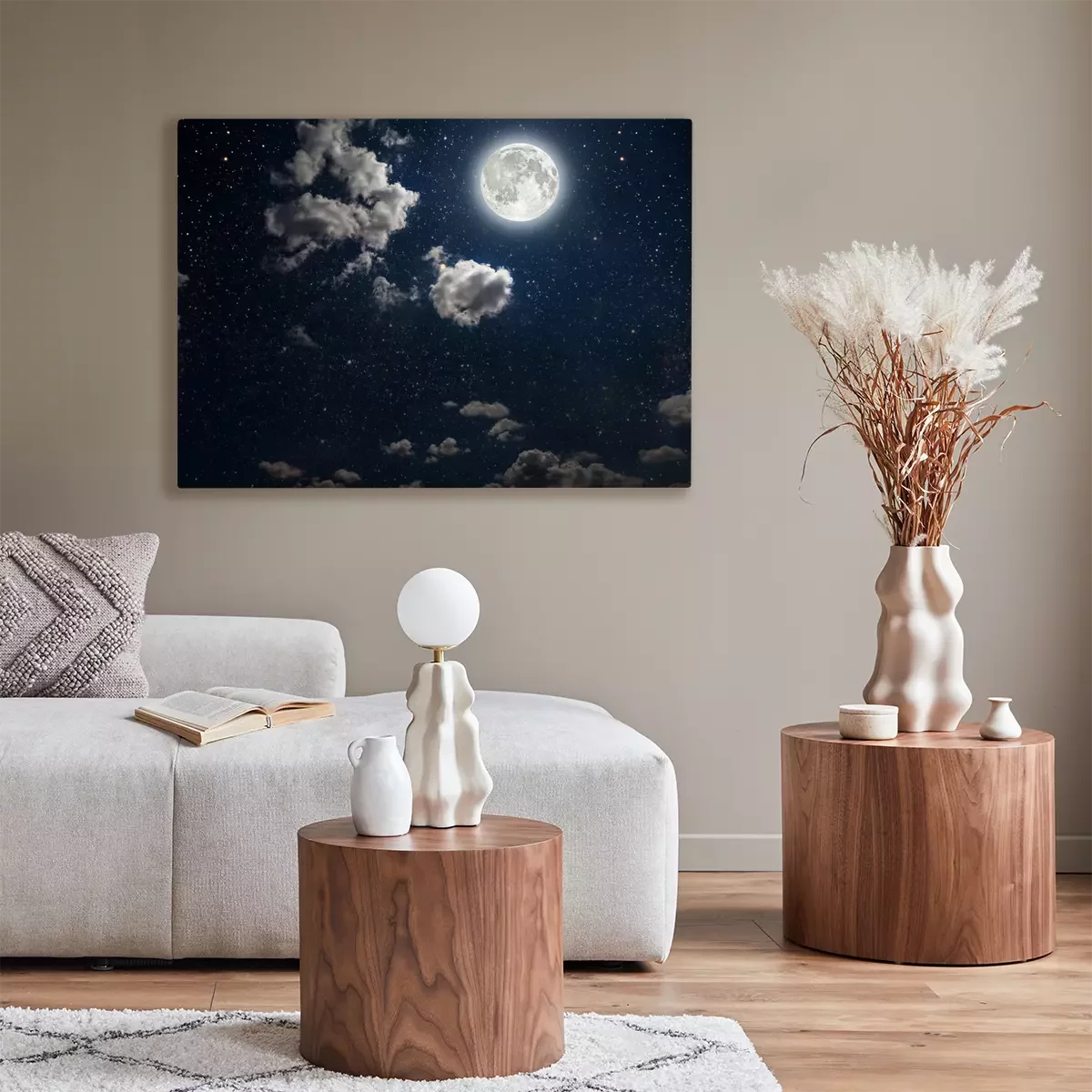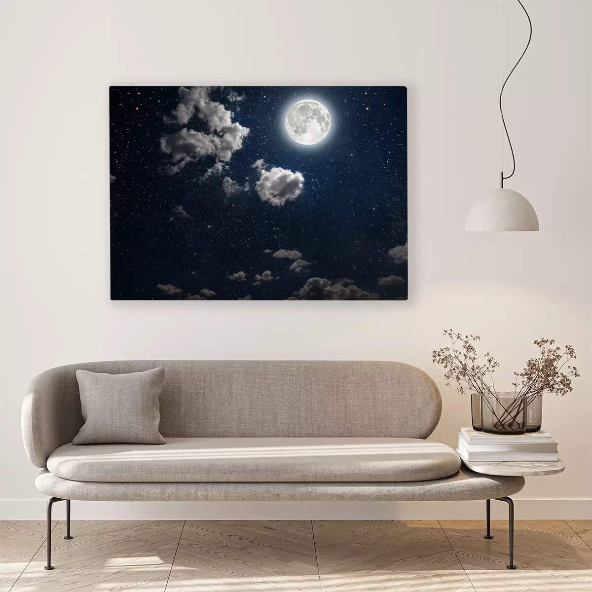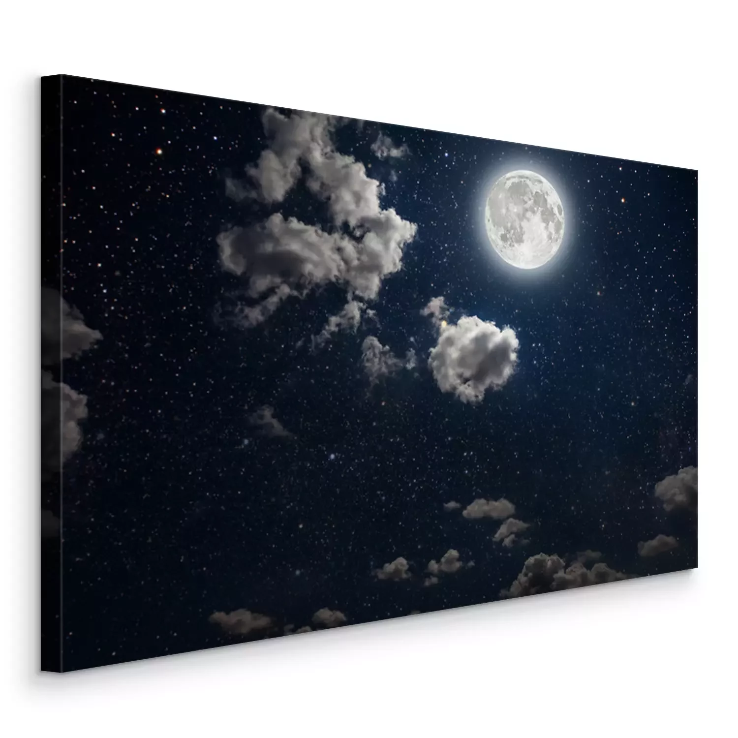 Canvas: Nachtelijke hemel met sterren en volle maan