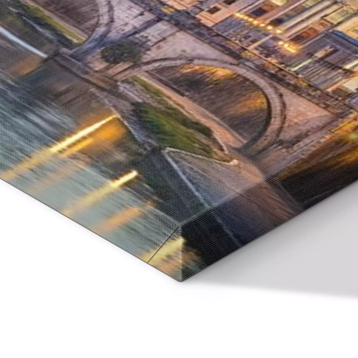 De print wordt aangebracht op hoogwaardig canvas dat op een schildersweefgetouw (spieraam) wordt gespannen. Omdat de print de zijranden bedekt, hoeft het ontwerp niet met een extra kader te worden omlijst. Wij raden ook composities aan die uit meerdere foto's bestaan en zo een coherente compositie vormen.