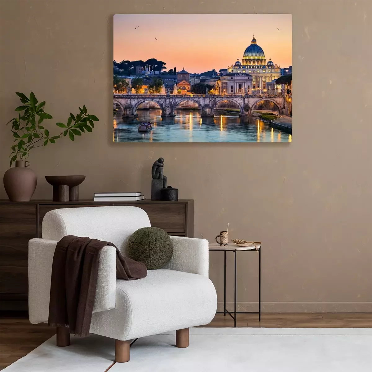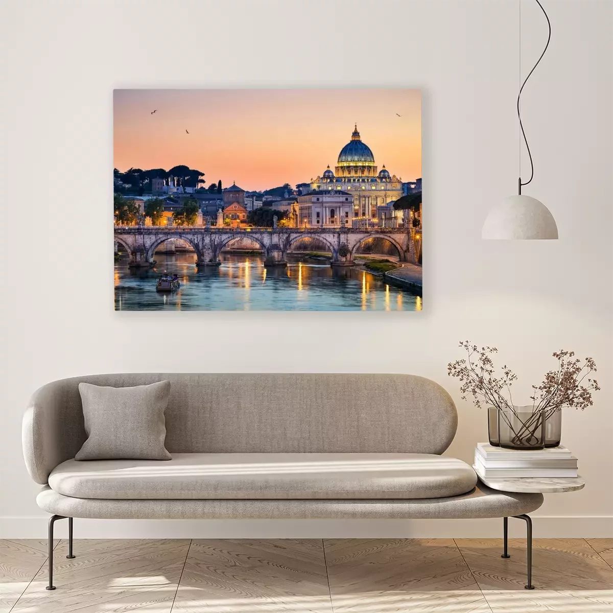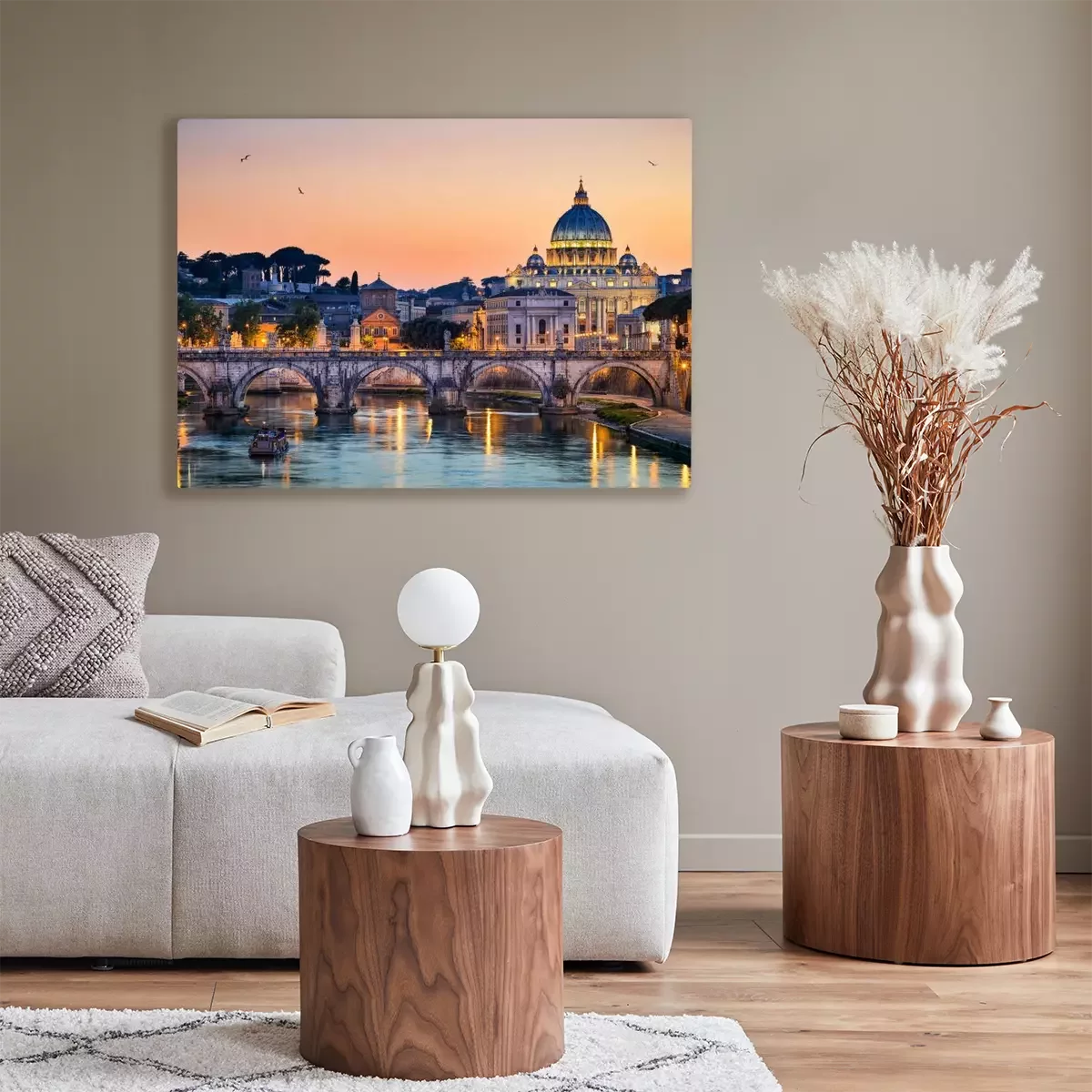 Canvas Nachtzicht op de Sint-Pietersbasiliek in Rome, Italië