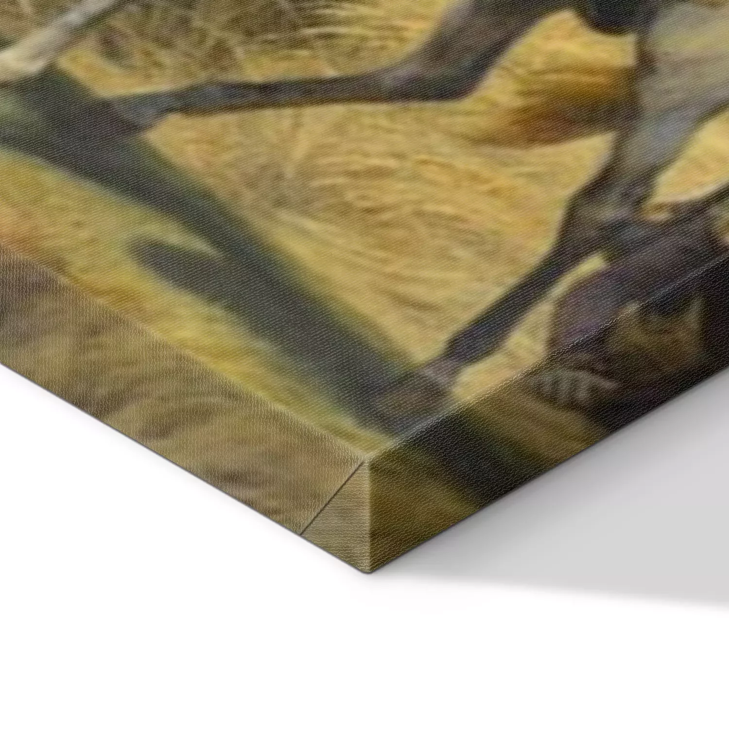 De print wordt aangebracht op hoogwaardig canvas dat op een schildersweefgetouw (spieraam) wordt gespannen. Omdat de print de zijranden bedekt, hoeft het ontwerp niet met een extra kader te worden omlijst. Wij raden ook composities aan die uit meerdere foto's bestaan en zo een coherente compositie vormen.