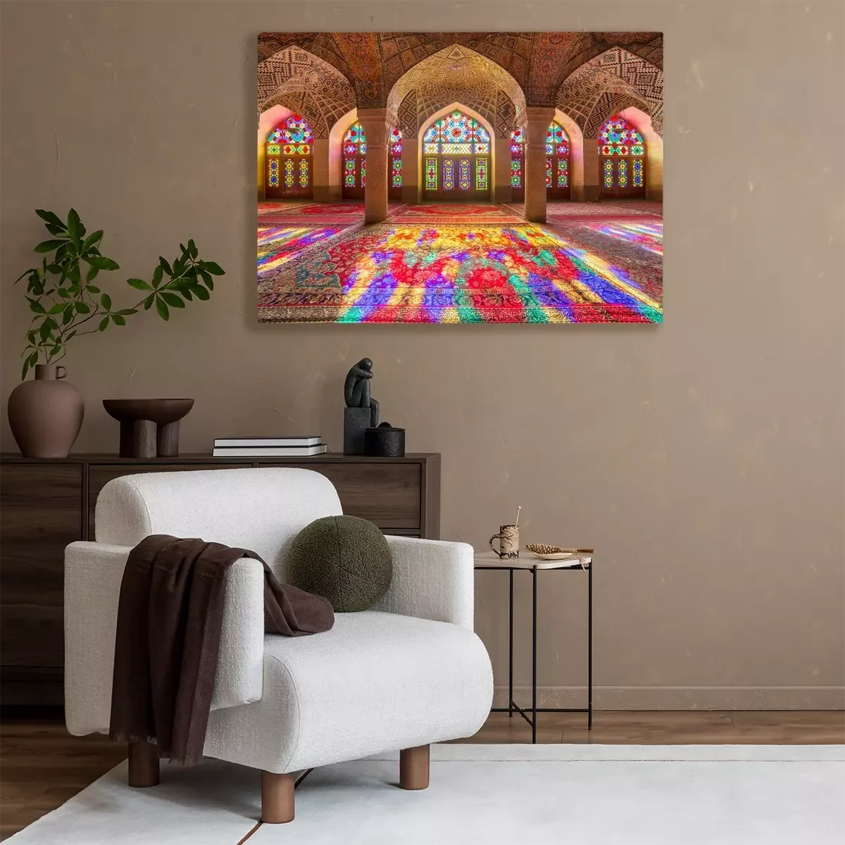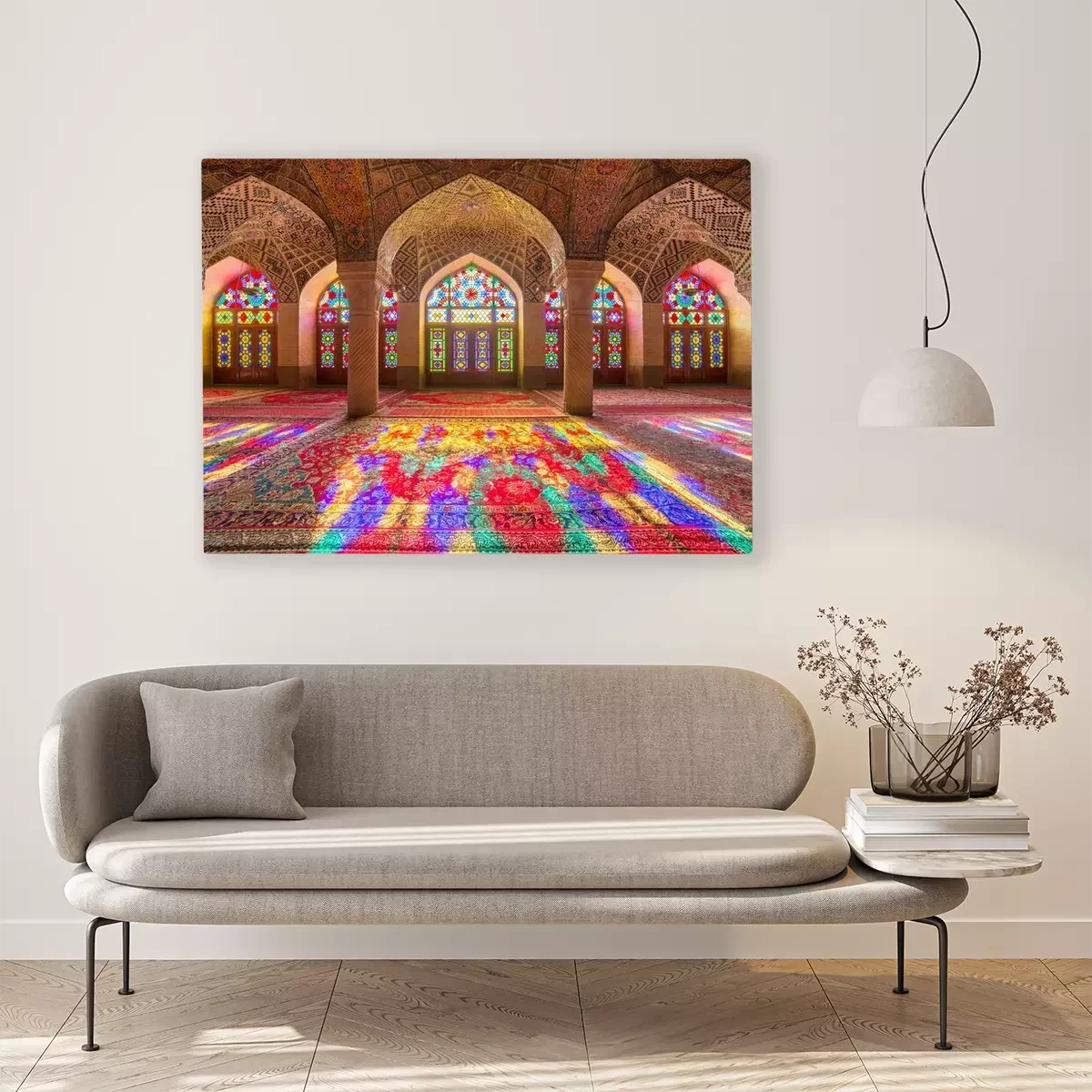 Canvas: Nasir Al-Mulk moskee in Shiraz, Iran, ook wel bekend als Pink Mosque