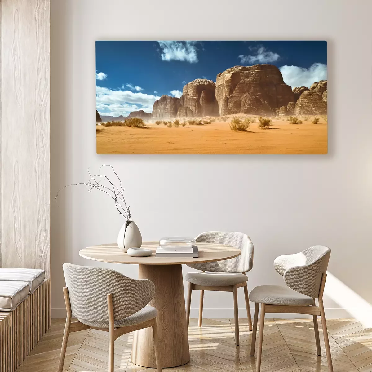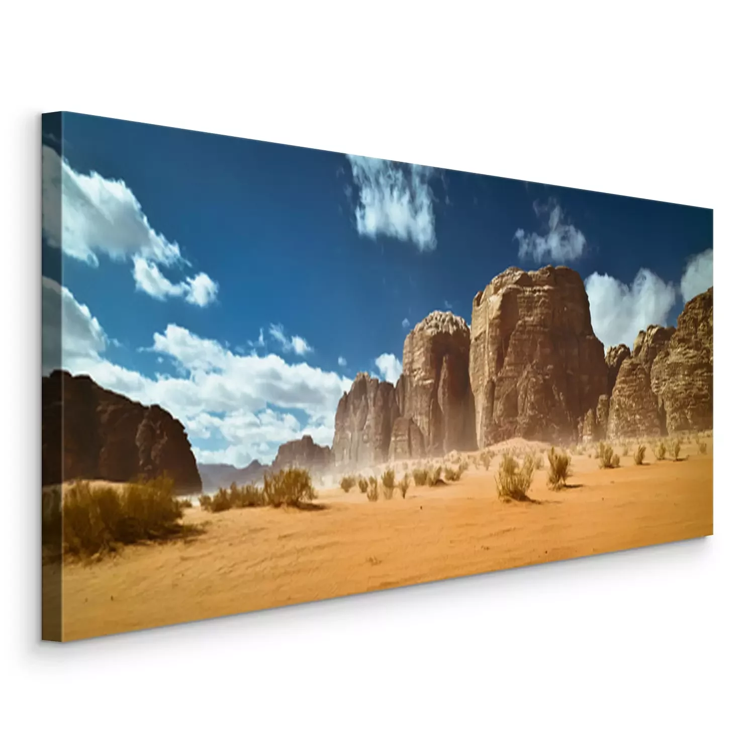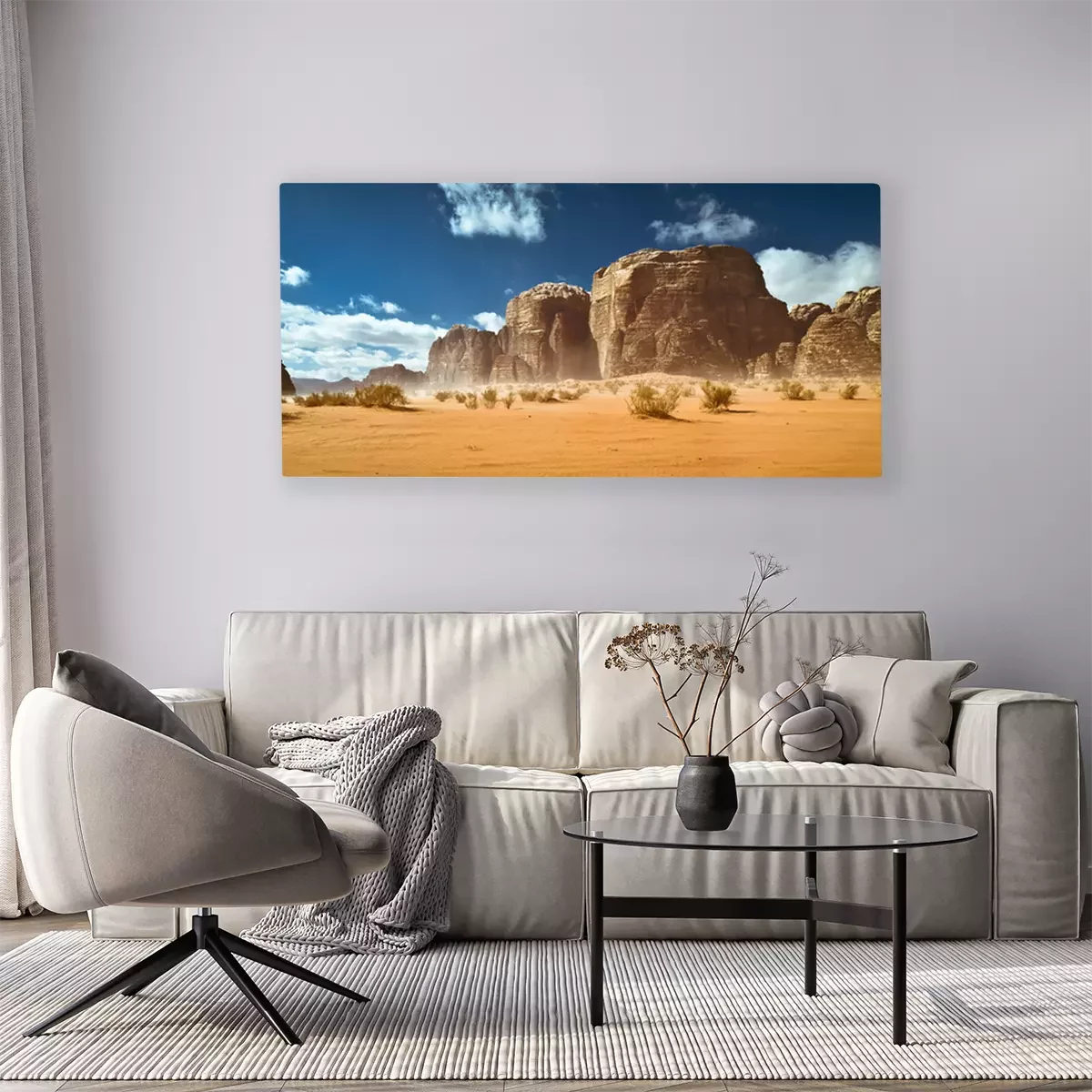 Canvas Nature and rocks of Wadi Rum or Valley of the Moon desert, Jordan, sand storm
