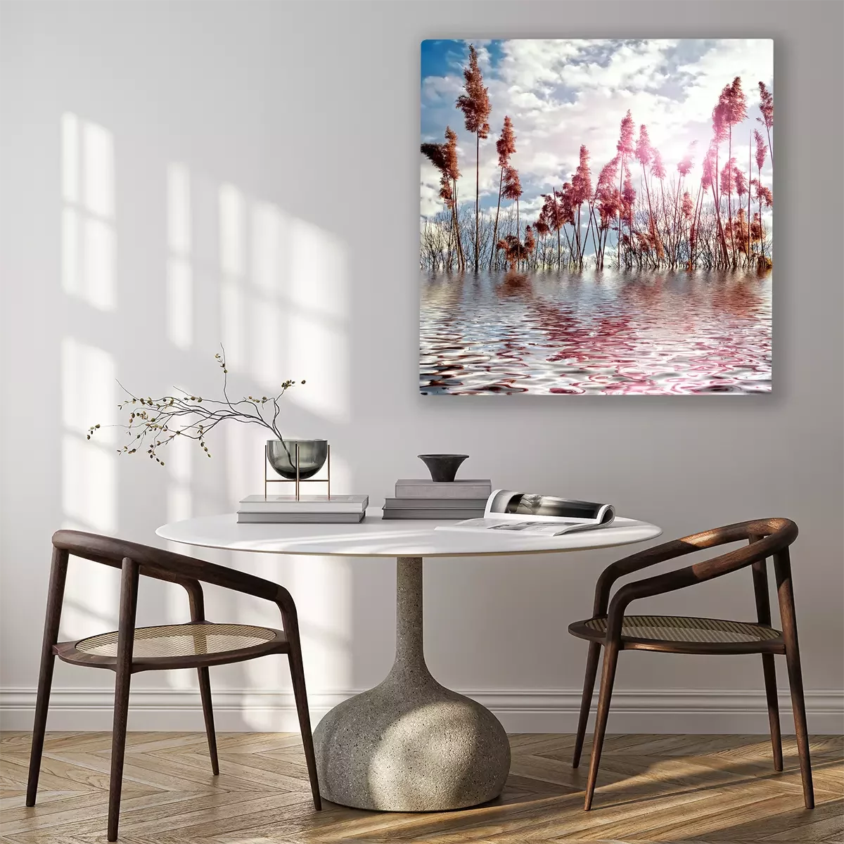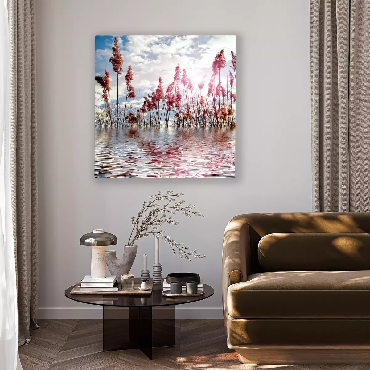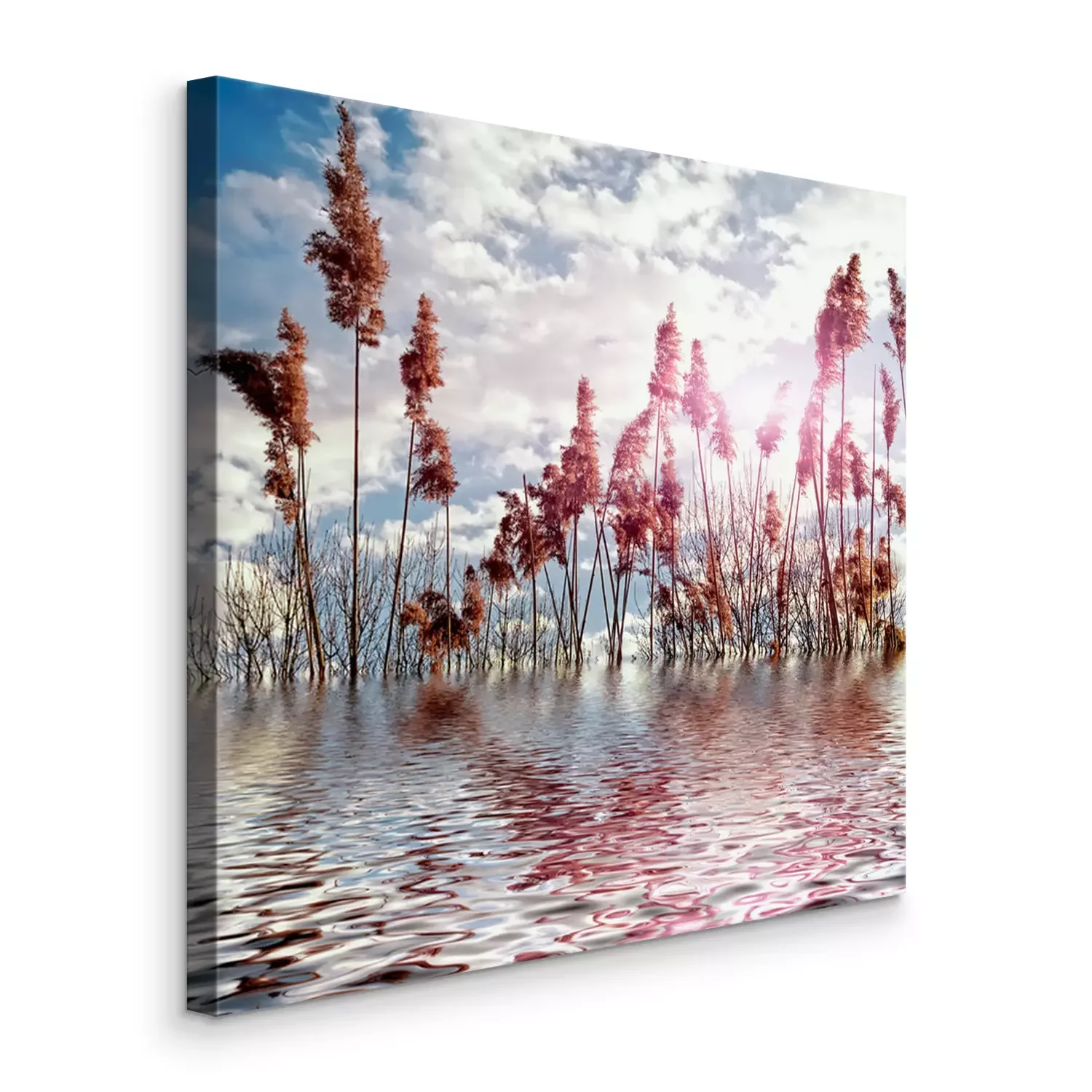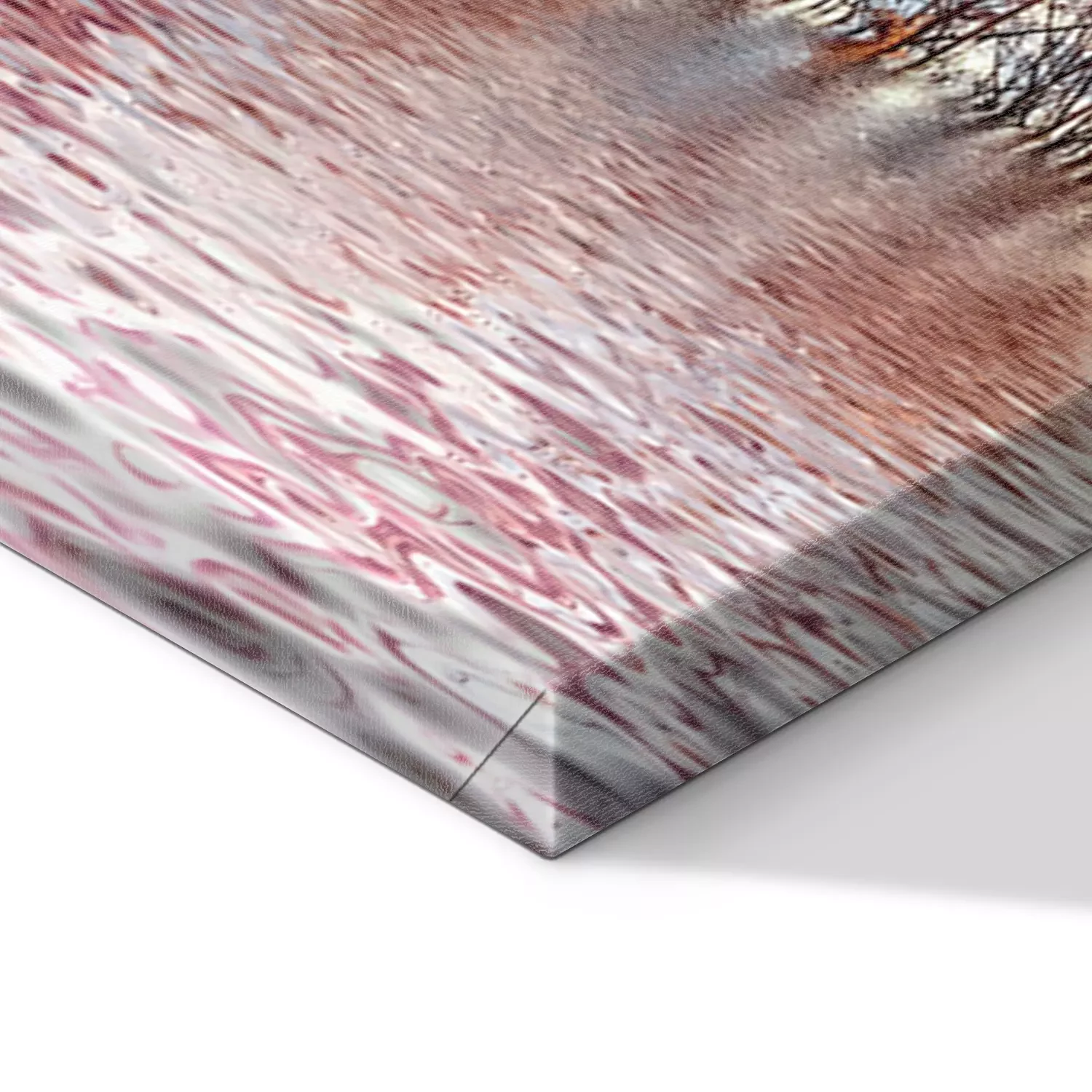 De print wordt aangebracht op hoogwaardig canvas dat op een schildersweefgetouw (spieraam) wordt gespannen. Omdat de print de zijranden bedekt, hoeft het ontwerp niet met een extra kader te worden omlijst. Wij raden ook composities aan die uit meerdere foto's bestaan en zo een coherente compositie vormen.
