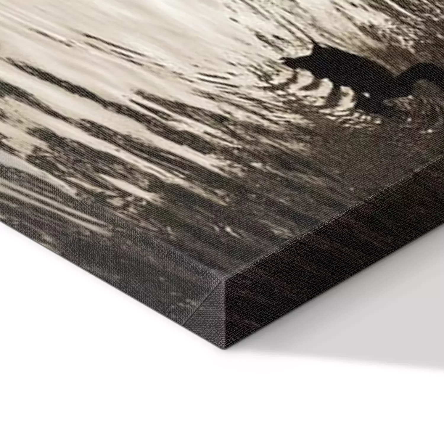 De print wordt aangebracht op hoogwaardig canvas dat op een schildersweefgetouw (spieraam) wordt gespannen. Omdat de print de zijranden bedekt, hoeft het ontwerp niet met een extra kader te worden omlijst. Wij raden ook composities aan die uit meerdere foto's bestaan en zo een coherente compositie vormen.