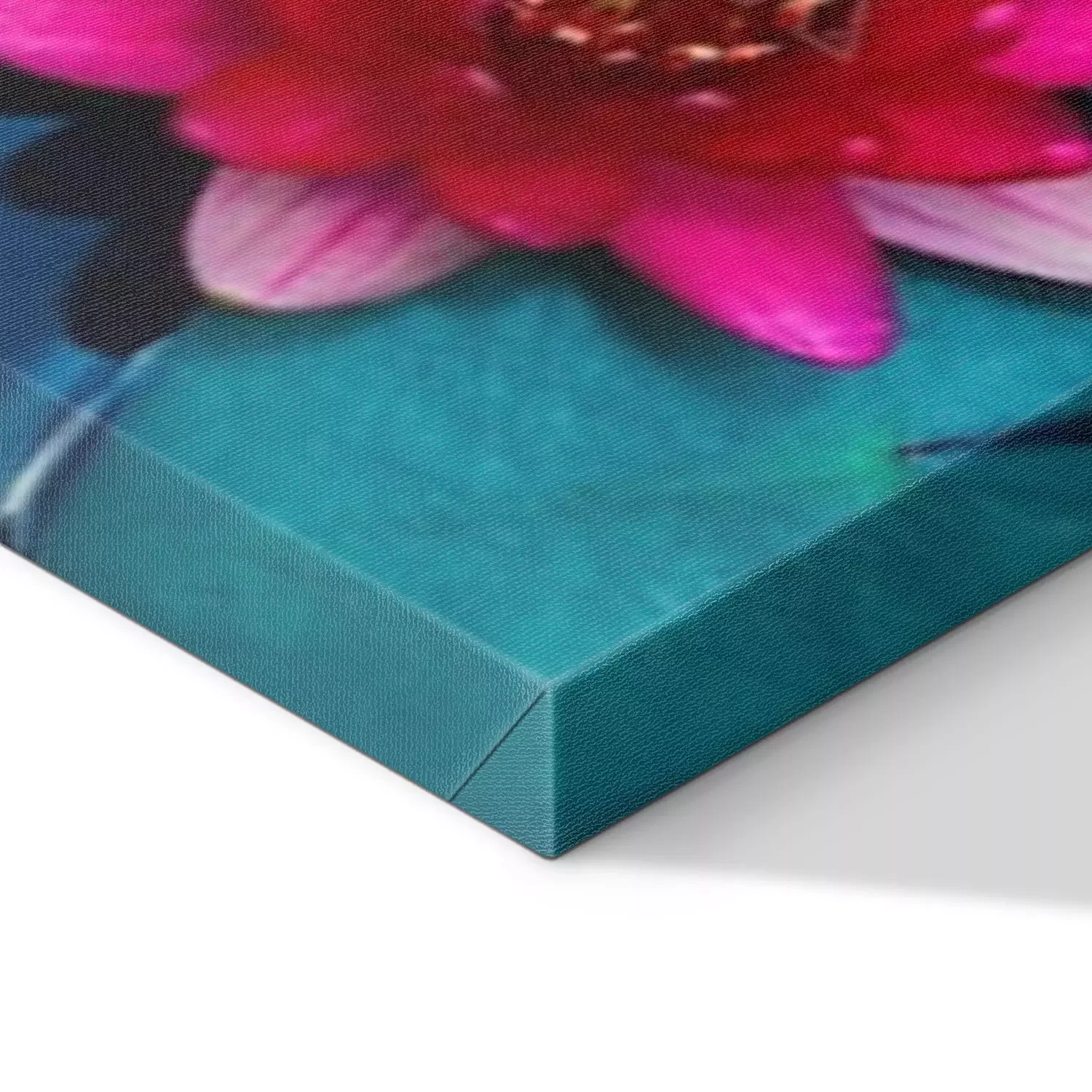 De print wordt aangebracht op hoogwaardig canvas dat op een schildersweefgetouw (spieraam) wordt gespannen. Omdat de print de zijranden bedekt, hoeft het ontwerp niet met een extra kader te worden omlijst. Wij raden ook composities aan die uit meerdere foto's bestaan en zo een coherente compositie vormen.