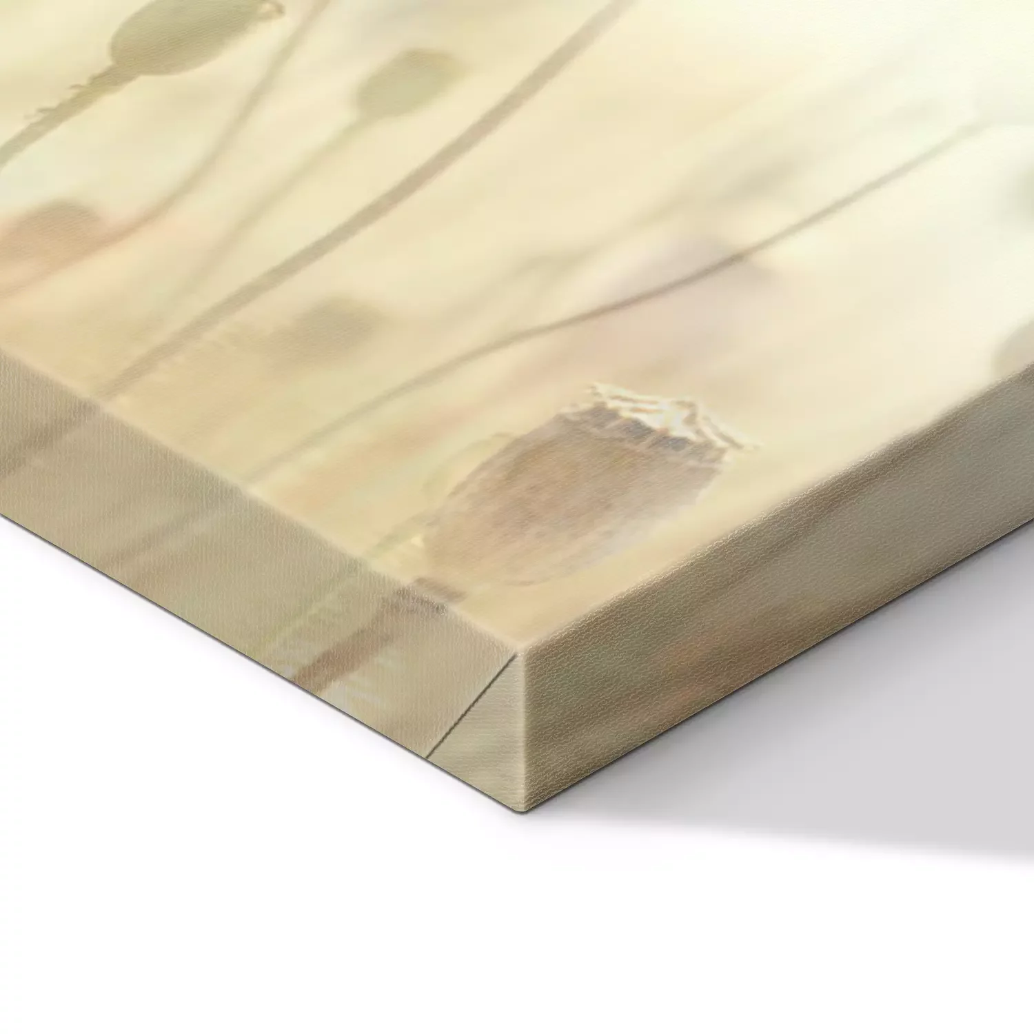 De print wordt aangebracht op hoogwaardig canvas dat op een schildersweefgetouw (spieraam) wordt gespannen. Omdat de print de zijranden bedekt, hoeft het ontwerp niet met een extra kader te worden omlijst. Wij raden ook composities aan die uit meerdere foto's bestaan en zo een coherente compositie vormen.