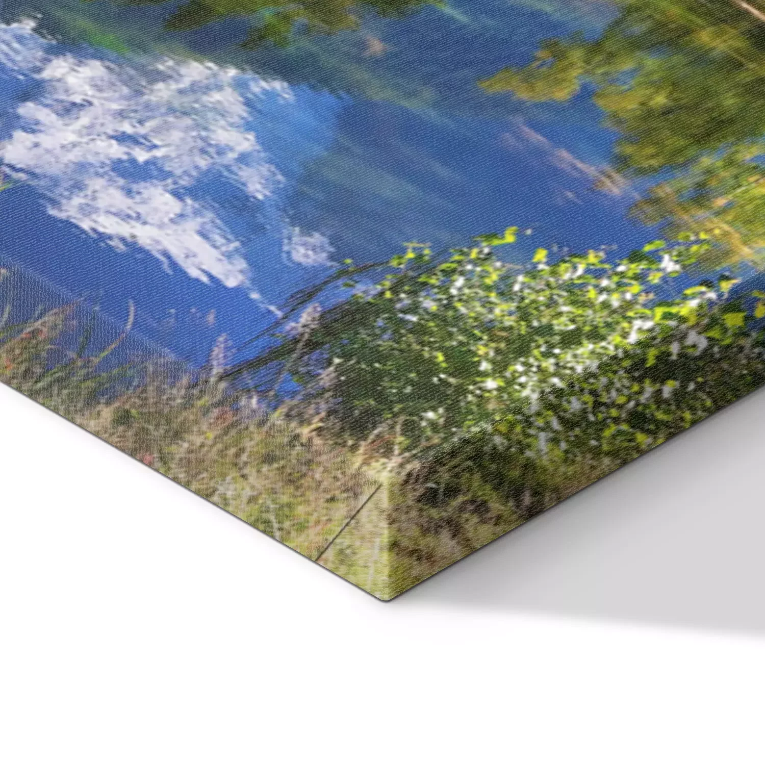 De print wordt aangebracht op hoogwaardig canvas dat op een schildersweefgetouw (spieraam) wordt gespannen. Omdat de print de zijranden bedekt, hoeft het ontwerp niet met een extra kader te worden omlijst. Wij raden ook composities aan die uit meerdere foto's bestaan en zo een coherente compositie vormen.