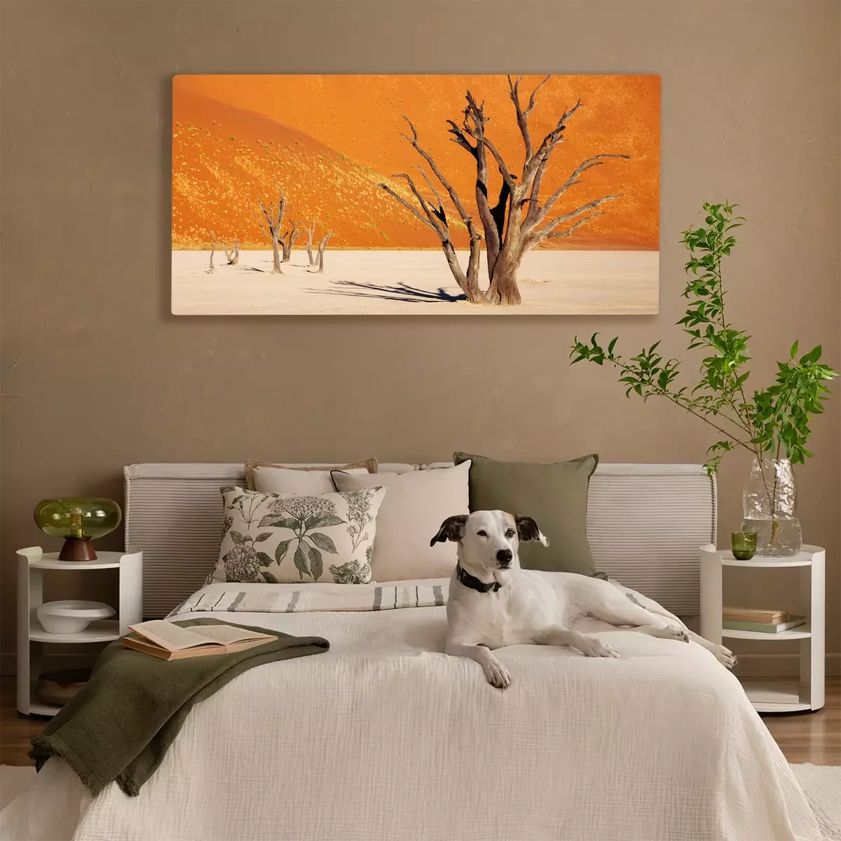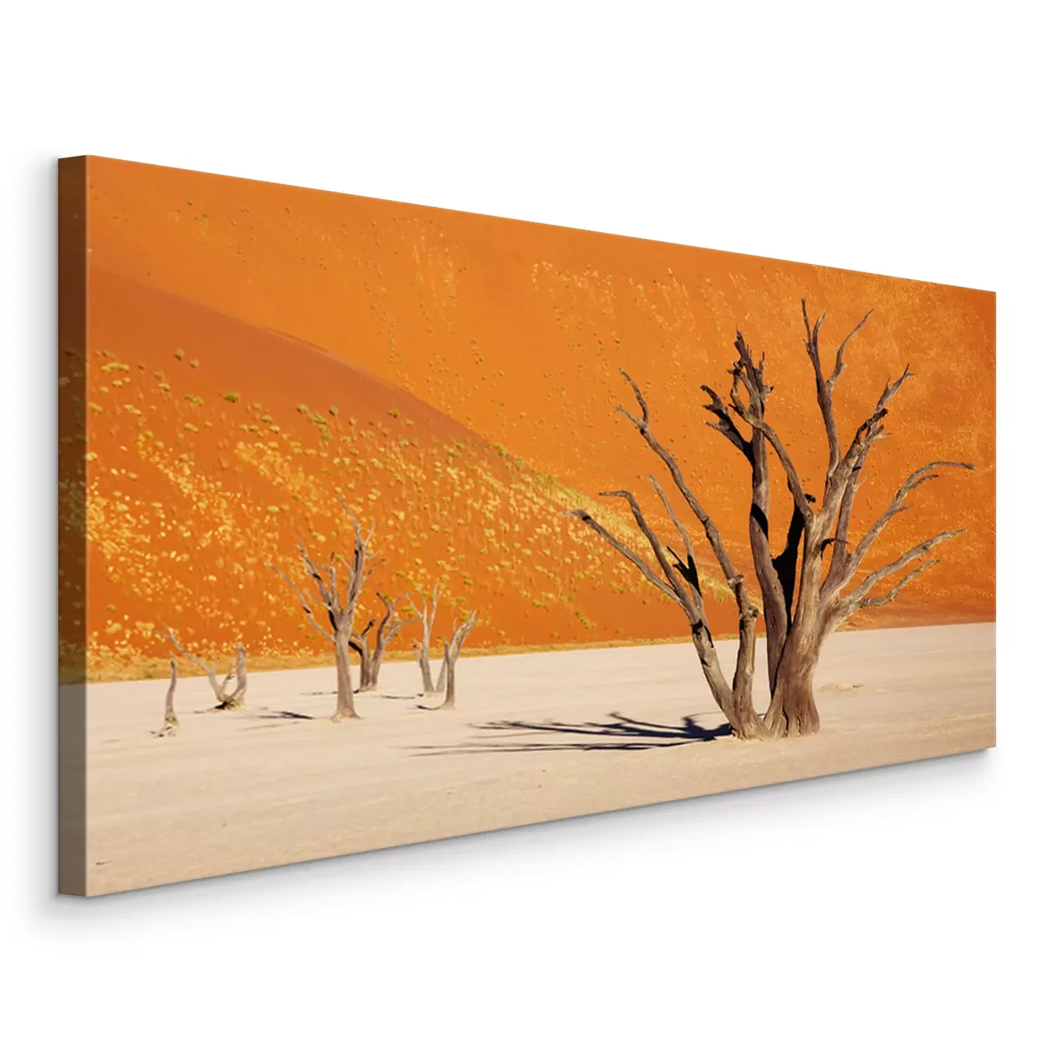 De print wordt aangebracht op hoogwaardig canvas dat op een schildersweefgetouw (spieraam) wordt gespannen. Omdat de print de zijranden bedekt, hoeft het ontwerp niet met een extra kader te worden omlijst. Wij raden ook composities aan die uit meerdere foto's bestaan en zo een coherente compositie vormen.