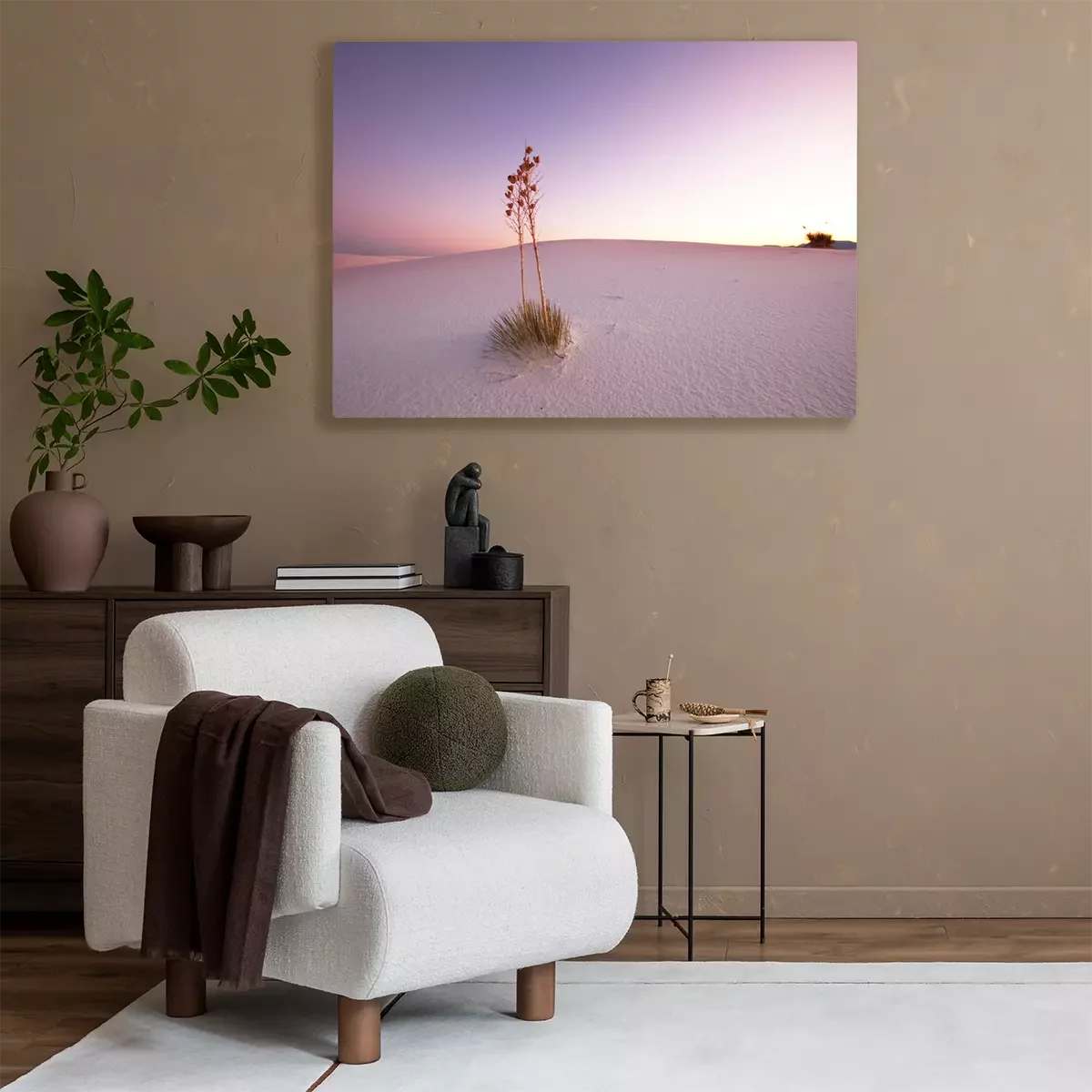 De print wordt aangebracht op hoogwaardig canvas dat op een schildersweefgetouw (spieraam) wordt gespannen. Omdat de print de zijranden bedekt, hoeft het ontwerp niet met een extra kader te worden omlijst. Wij raden ook composities aan die uit meerdere foto's bestaan en zo een coherente compositie vormen.