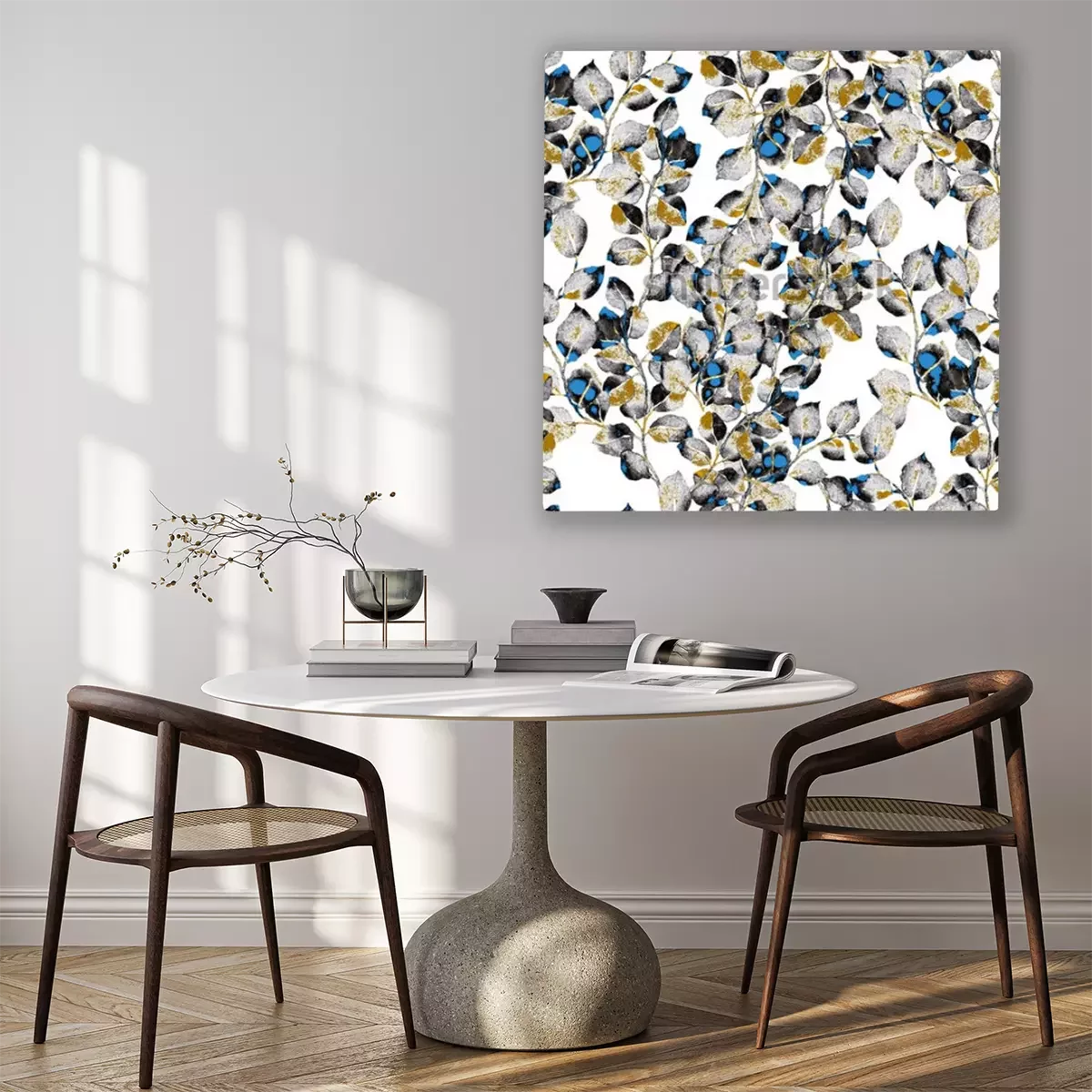 De print wordt aangebracht op hoogwaardig canvas dat op een schildersweefgetouw (spieraam) wordt gespannen. Omdat de print de zijranden bedekt, hoeft het ontwerp niet met een extra kader te worden omlijst. Wij raden ook composities aan die uit meerdere foto's bestaan en zo een coherente compositie vormen.