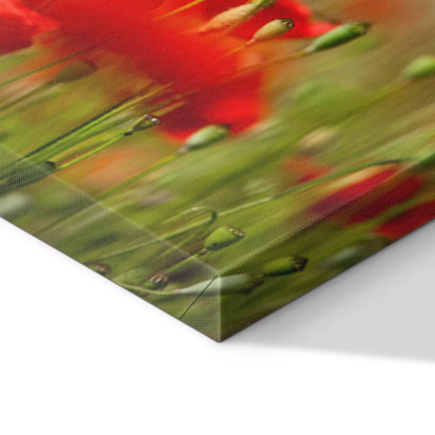 De print wordt aangebracht op hoogwaardig canvas dat op een schildersweefgetouw (spieraam) wordt gespannen. Omdat de print de zijranden bedekt, hoeft het ontwerp niet met een extra kader te worden omlijst. Wij raden ook composities aan die uit meerdere foto's bestaan en zo een coherente compositie vormen.
