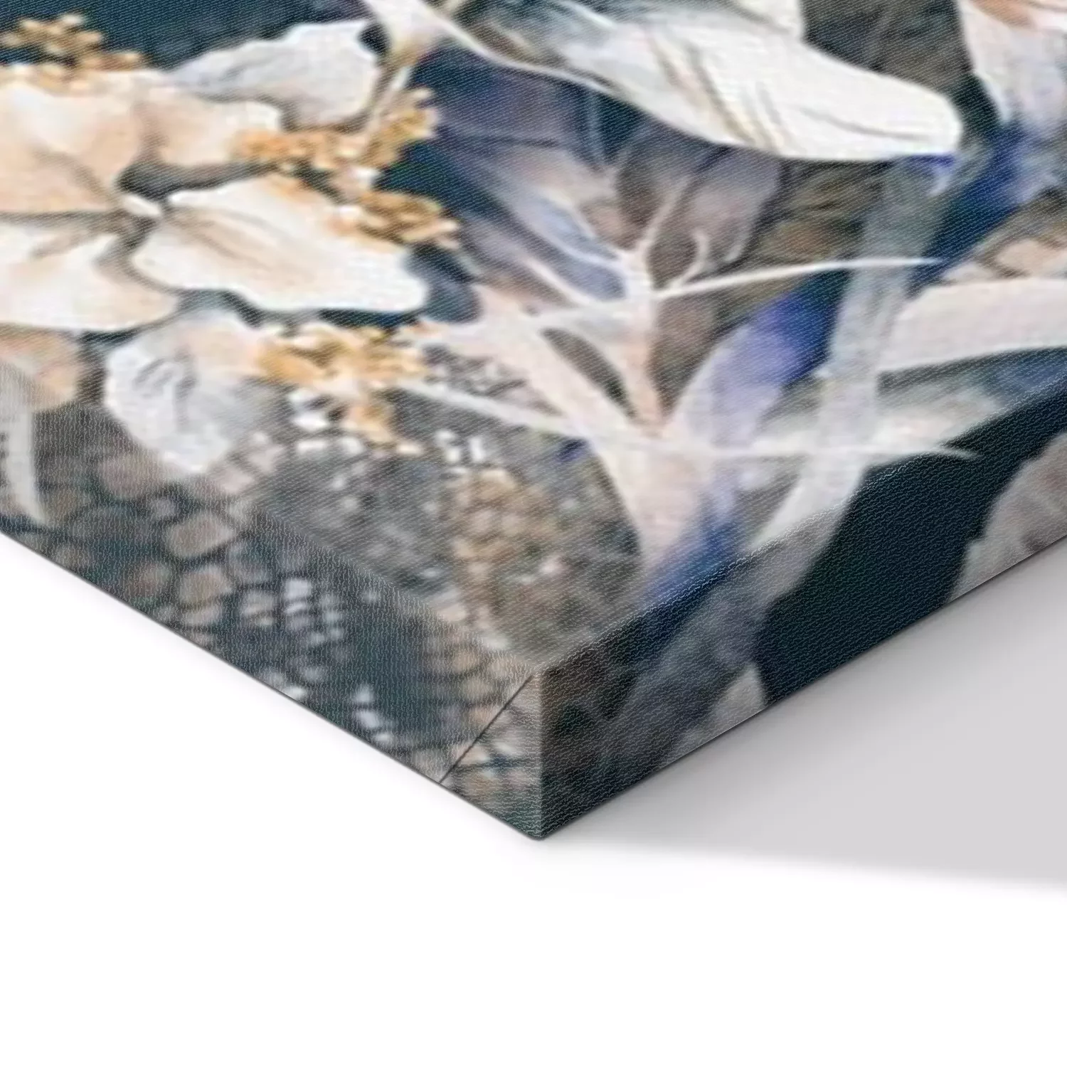 De print wordt aangebracht op hoogwaardig canvas dat op een schildersweefgetouw (spieraam) wordt gespannen. Omdat de print de zijranden bedekt, hoeft het ontwerp niet met een extra kader te worden omlijst. Wij raden ook composities aan die uit meerdere foto's bestaan en zo een coherente compositie vormen.