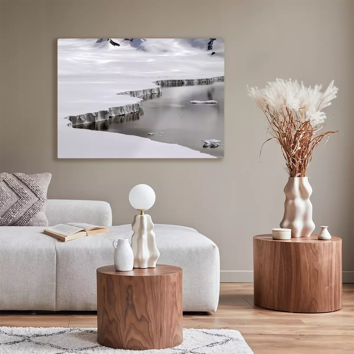 De print wordt aangebracht op hoogwaardig canvas dat op een schildersweefgetouw (spieraam) wordt gespannen. Omdat de print de zijranden bedekt, hoeft het ontwerp niet met een extra kader te worden omlijst. Wij raden ook composities aan die uit meerdere foto's bestaan en zo een coherente compositie vormen.