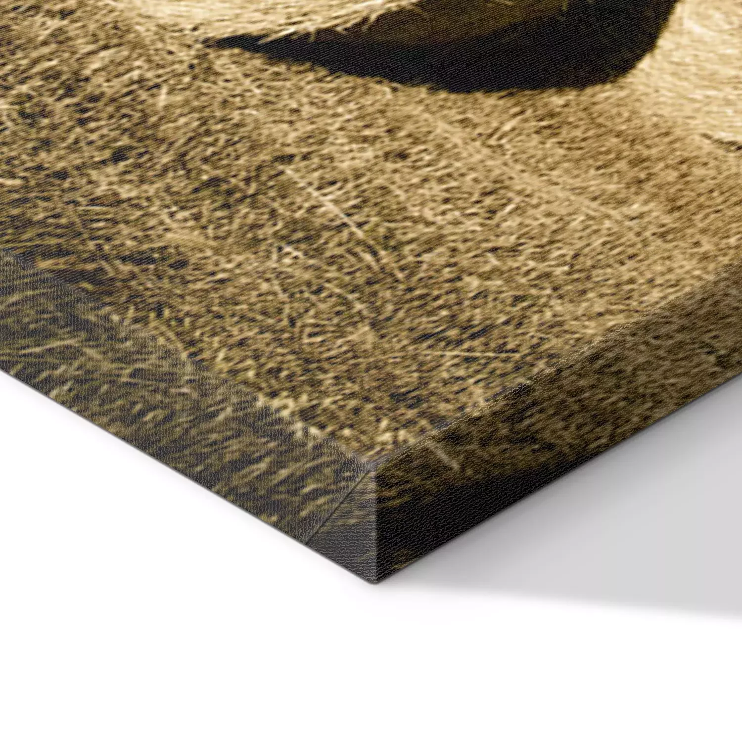 De print wordt aangebracht op hoogwaardig canvas dat op een schildersweefgetouw (spieraam) wordt gespannen. Omdat de print de zijranden bedekt, hoeft het ontwerp niet met een extra kader te worden omlijst. Wij raden ook composities aan die uit meerdere foto's bestaan en zo een coherente compositie vormen.