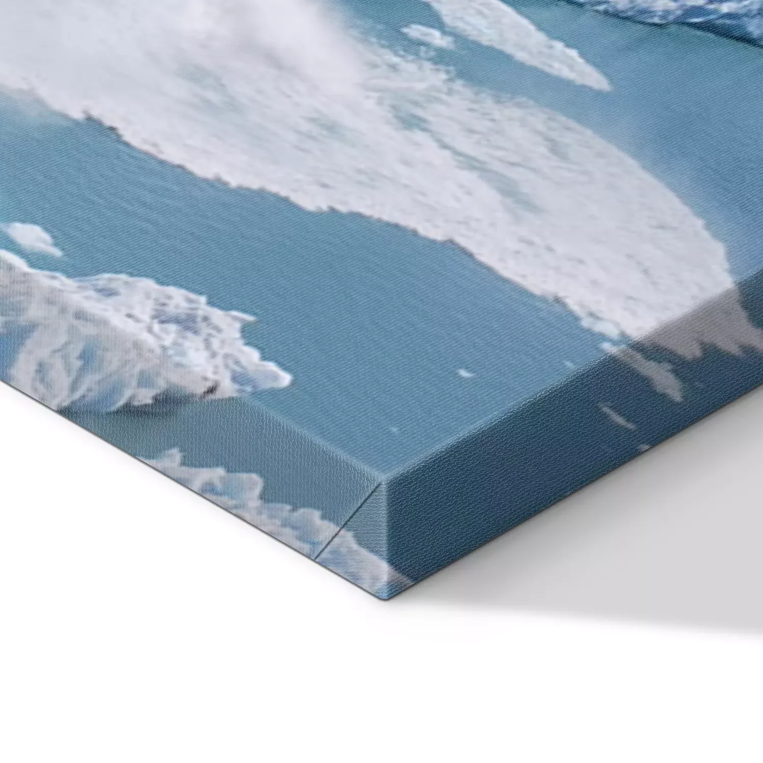 De print wordt aangebracht op hoogwaardig canvas dat op een schildersweefgetouw (spieraam) wordt gespannen. Omdat de print de zijranden bedekt, hoeft het ontwerp niet met een extra kader te worden omlijst. Wij raden ook composities aan die uit meerdere foto's bestaan en zo een coherente compositie vormen.