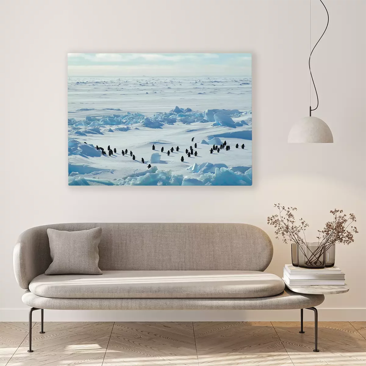 De print wordt aangebracht op hoogwaardig canvas dat op een schildersweefgetouw (spieraam) wordt gespannen. Omdat de print de zijranden bedekt, hoeft het ontwerp niet met een extra kader te worden omlijst. Wij raden ook composities aan die uit meerdere foto's bestaan en zo een coherente compositie vormen.