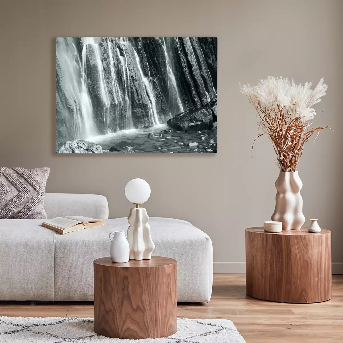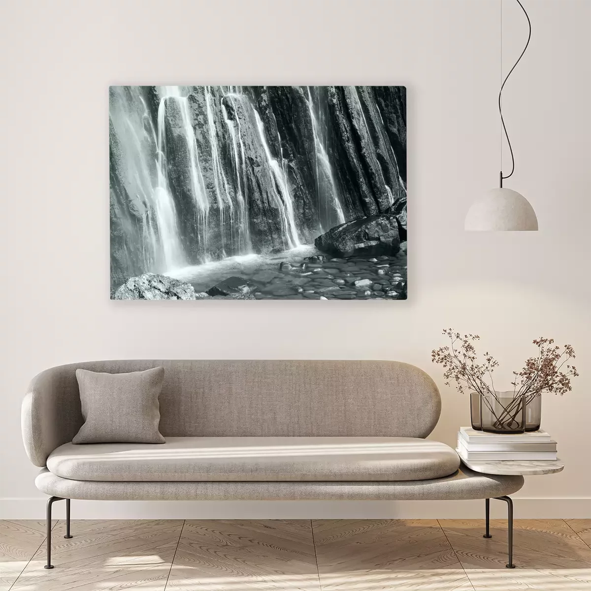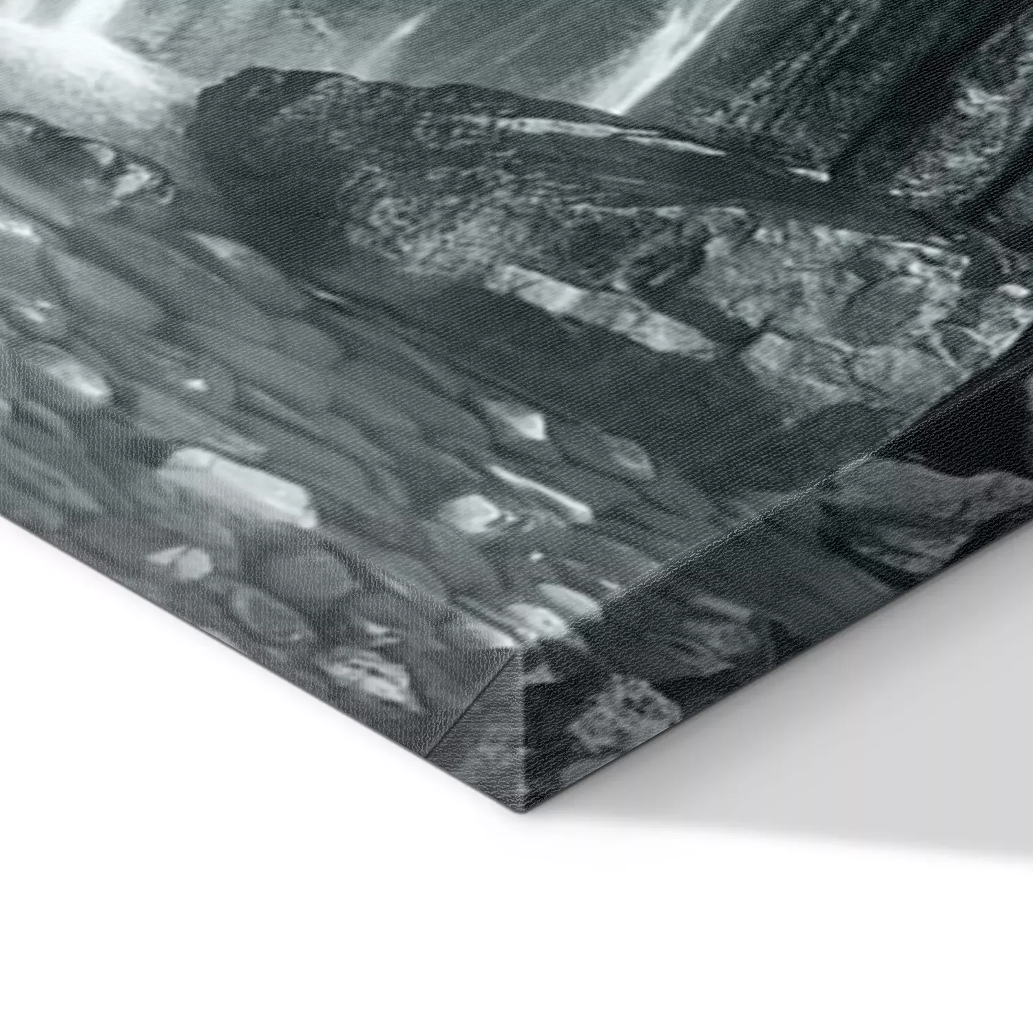 De print wordt aangebracht op hoogwaardig canvas dat op een schildersweefgetouw (spieraam) wordt gespannen. Omdat de print de zijranden bedekt, hoeft het ontwerp niet met een extra kader te worden omlijst. Wij raden ook composities aan die uit meerdere foto's bestaan en zo een coherente compositie vormen.