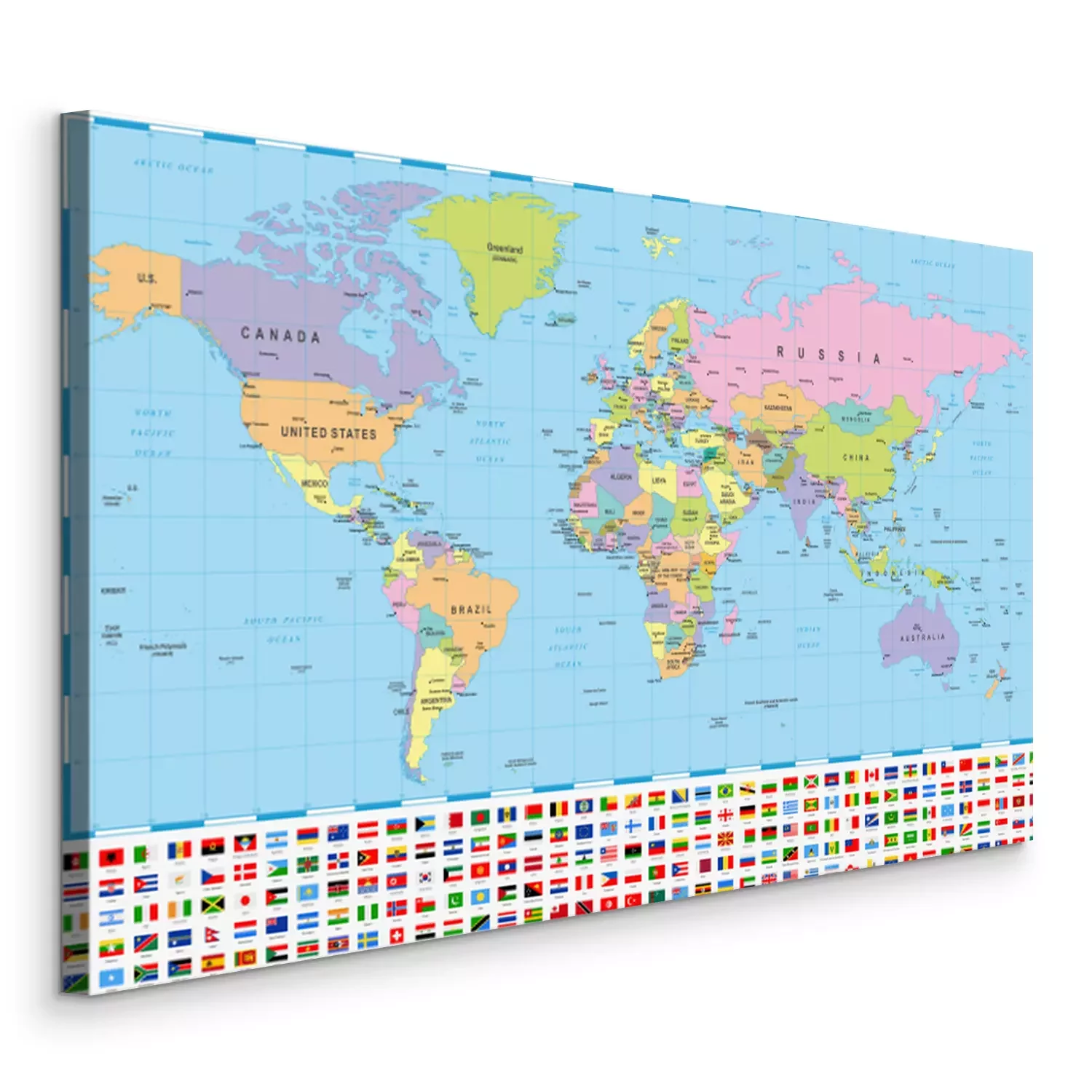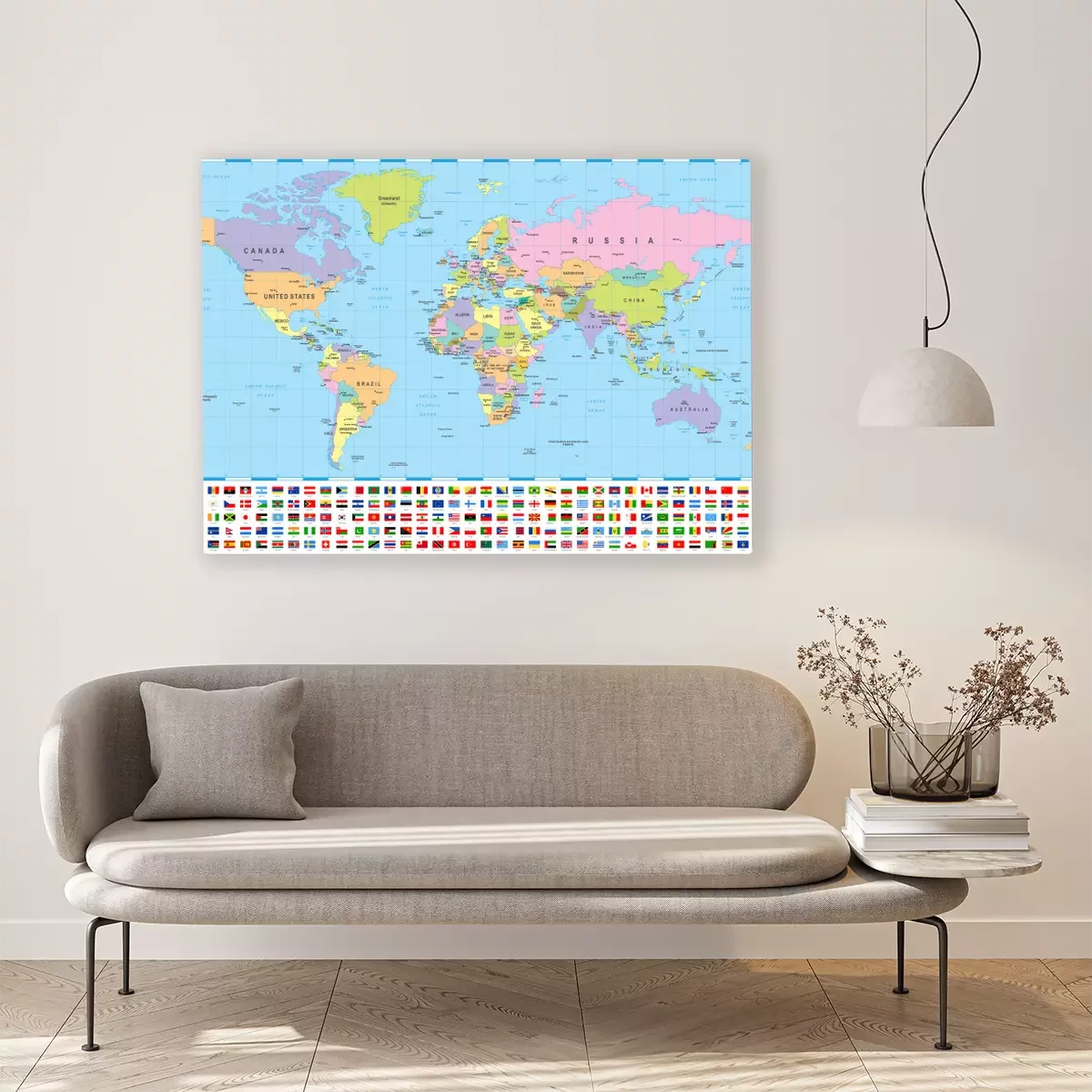 Canvas Nauwkeurige politieke kaart met landkaarten