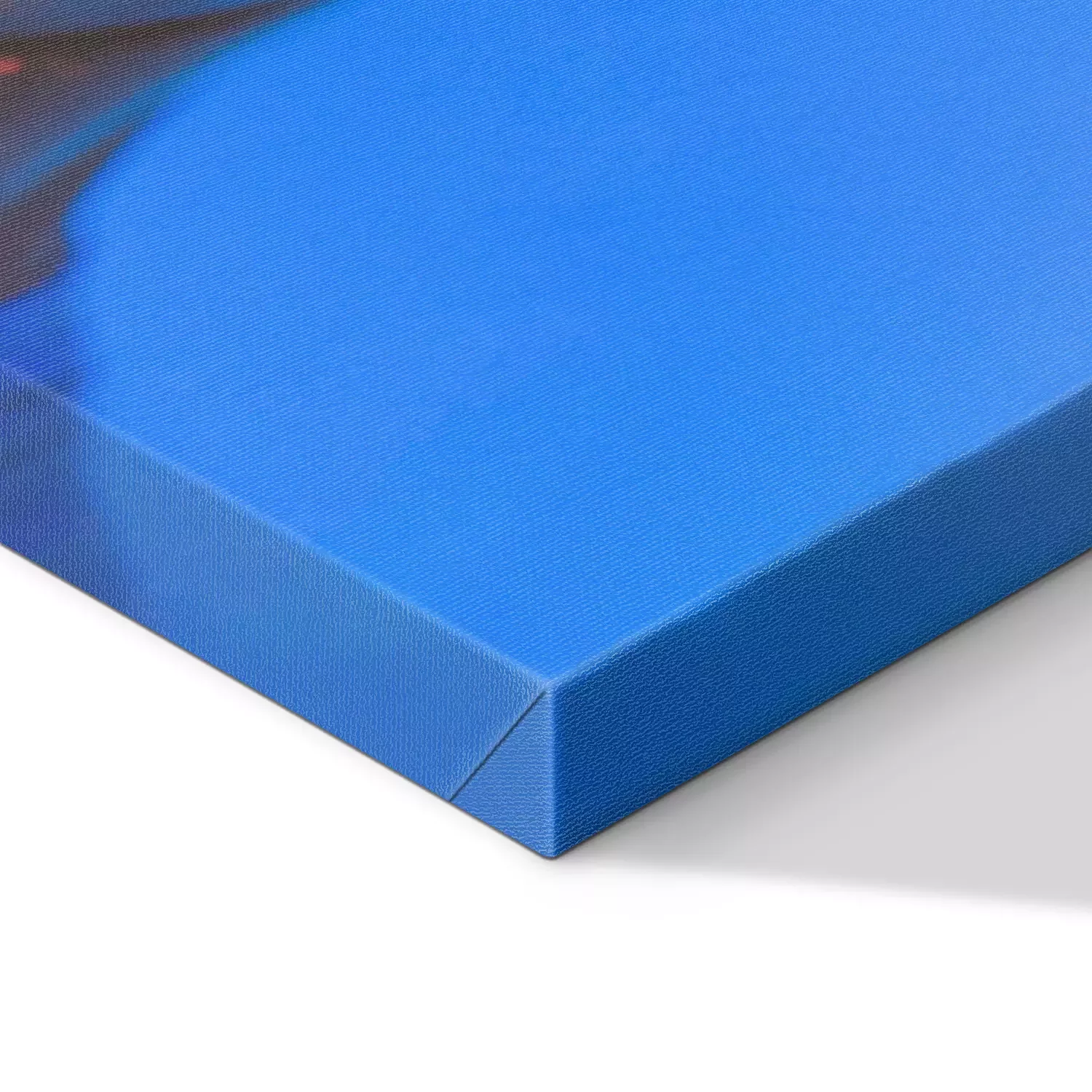 De print wordt aangebracht op hoogwaardig canvas dat op een schildersweefgetouw (spieraam) wordt gespannen. Omdat de print de zijranden bedekt, hoeft het ontwerp niet met een extra kader te worden omlijst. Wij raden ook composities aan die uit meerdere foto's bestaan en zo een coherente compositie vormen.
