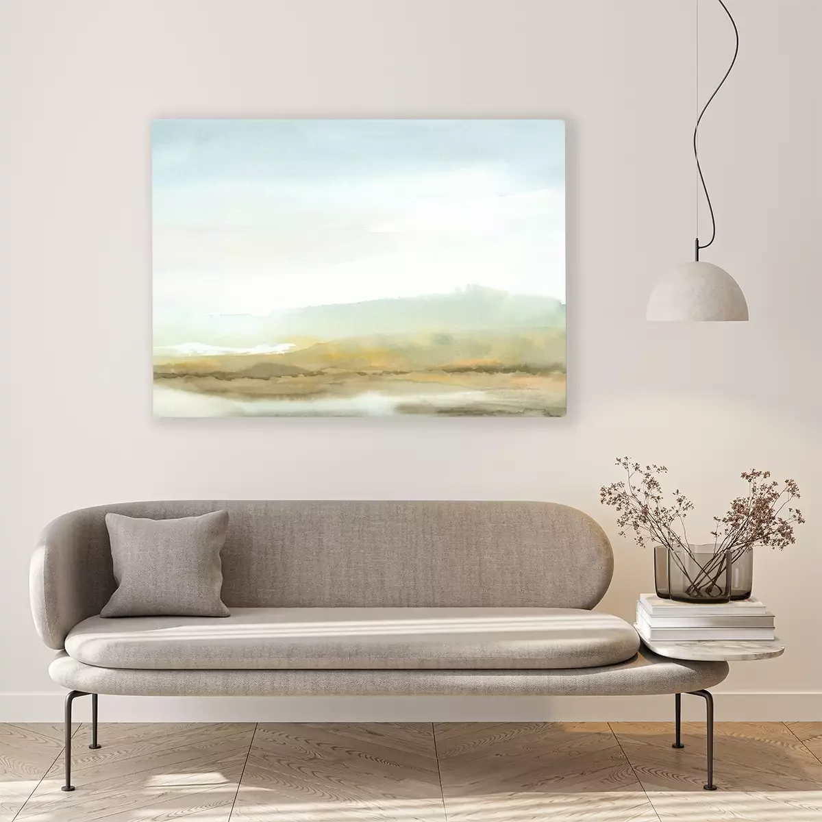 Canvas Neutral Brown and Blue Sky watercolor landscape with blank space abstract background with paper textured hand drawn and painted