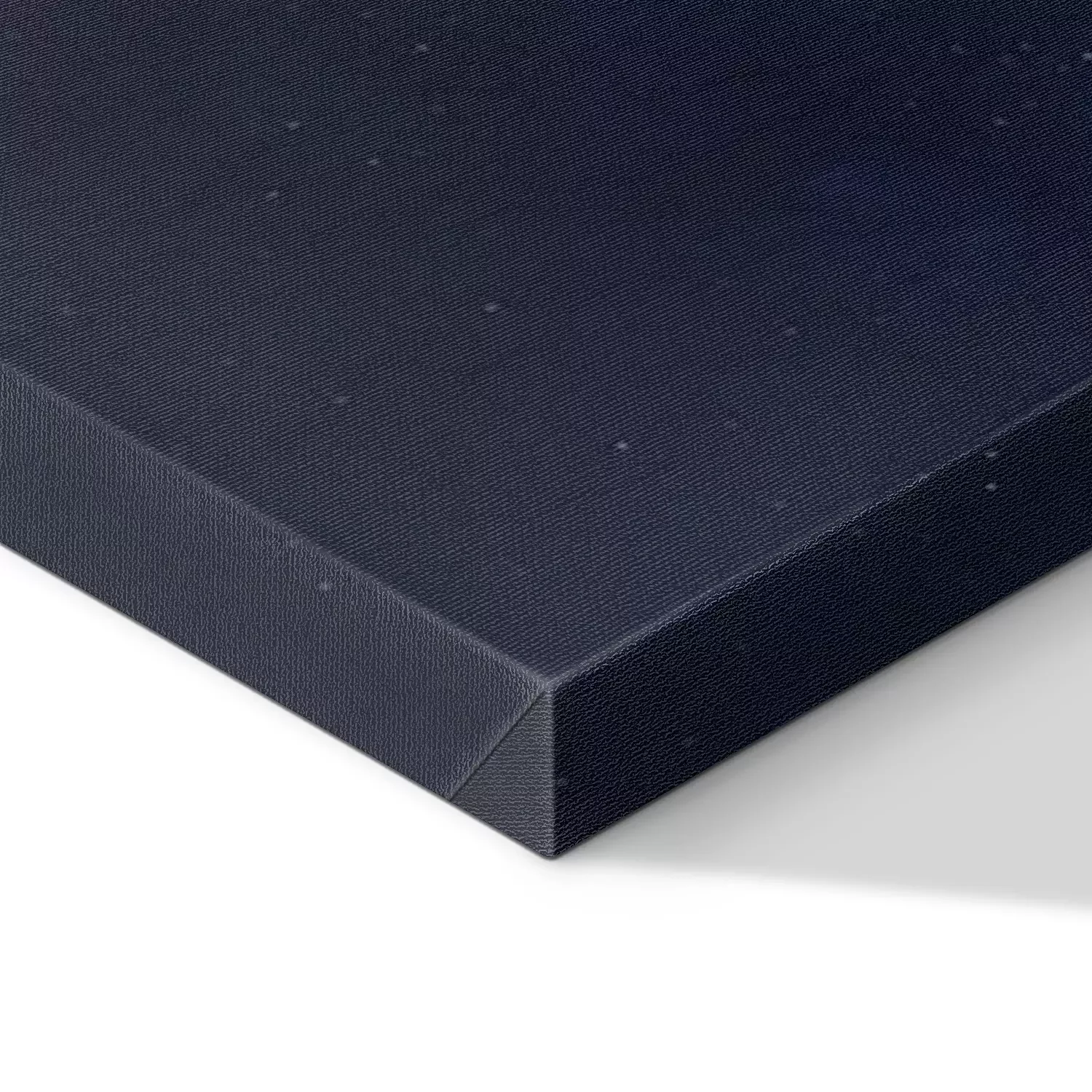 De print wordt aangebracht op hoogwaardig canvas dat op een schildersweefgetouw (spieraam) wordt gespannen. Omdat de print de zijranden bedekt, hoeft het ontwerp niet met een extra kader te worden omlijst. Wij raden ook composities aan die uit meerdere foto's bestaan en zo een coherente compositie vormen.