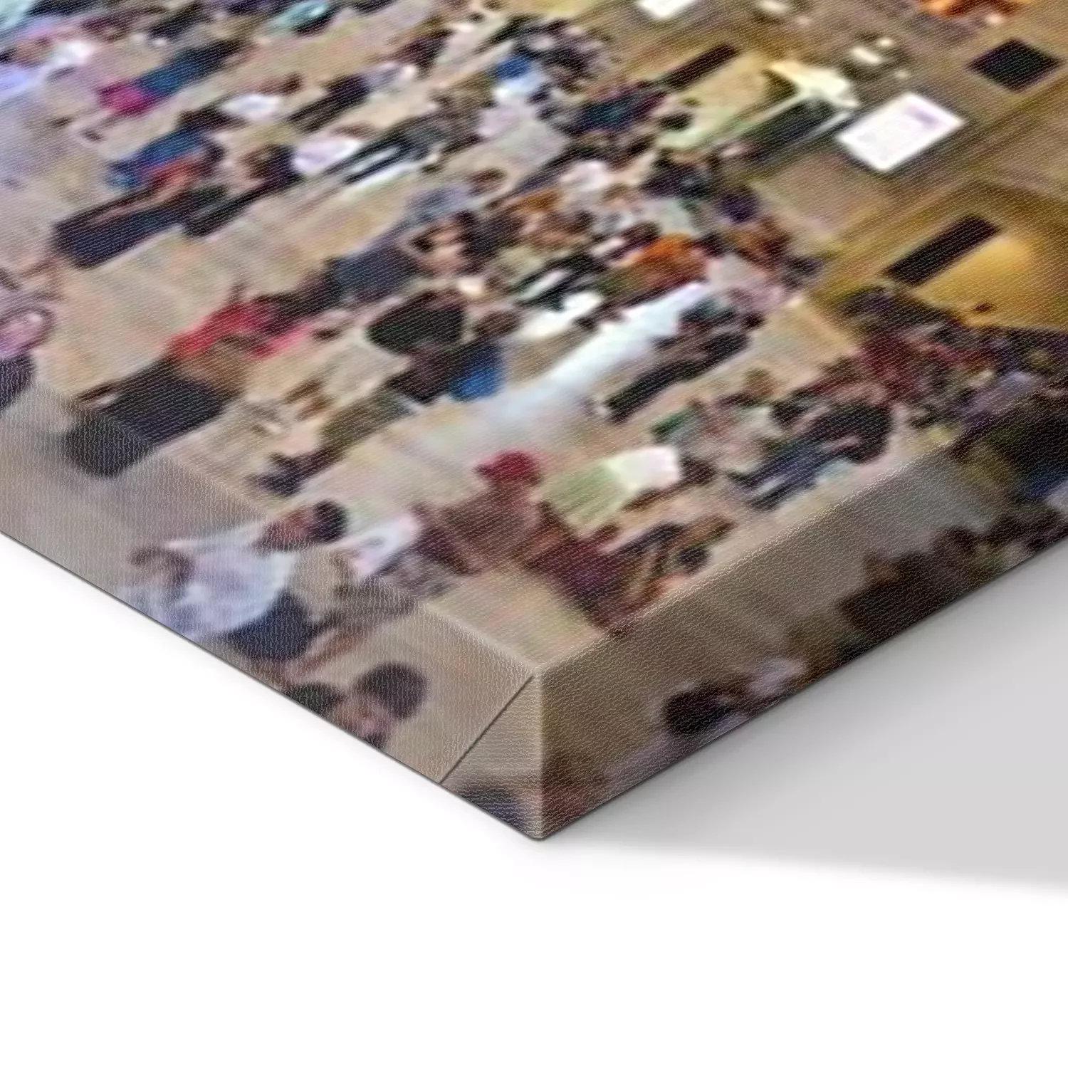 De print wordt aangebracht op hoogwaardig canvas dat op een schildersweefgetouw (spieraam) wordt gespannen. Omdat de print de zijranden bedekt, hoeft het ontwerp niet met een extra kader te worden omlijst. Wij raden ook composities aan die uit meerdere foto's bestaan en zo een coherente compositie vormen.