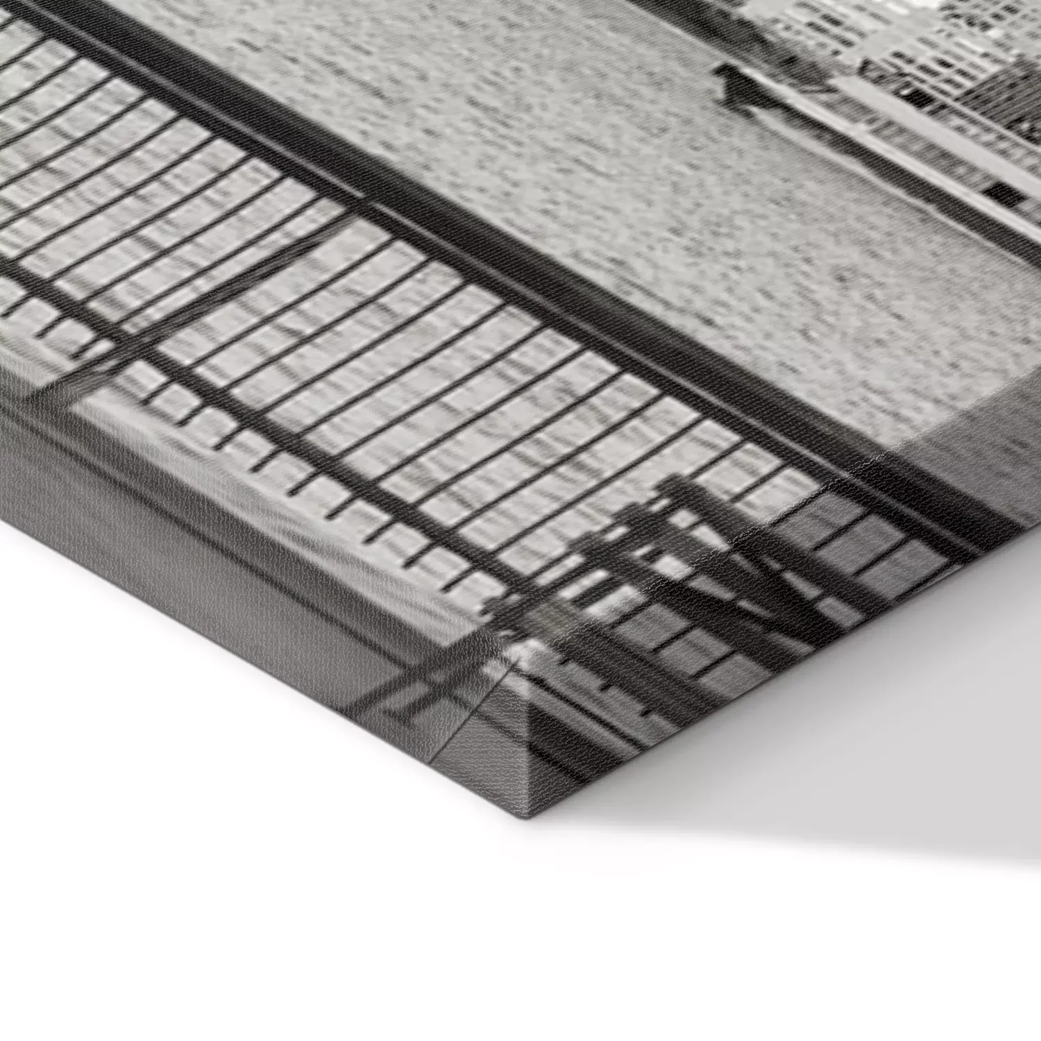 De print wordt aangebracht op hoogwaardig canvas dat op een schildersweefgetouw (spieraam) wordt gespannen. Omdat de print de zijranden bedekt, hoeft het ontwerp niet met een extra kader te worden omlijst. Wij raden ook composities aan die uit meerdere foto's bestaan en zo een coherente compositie vormen.