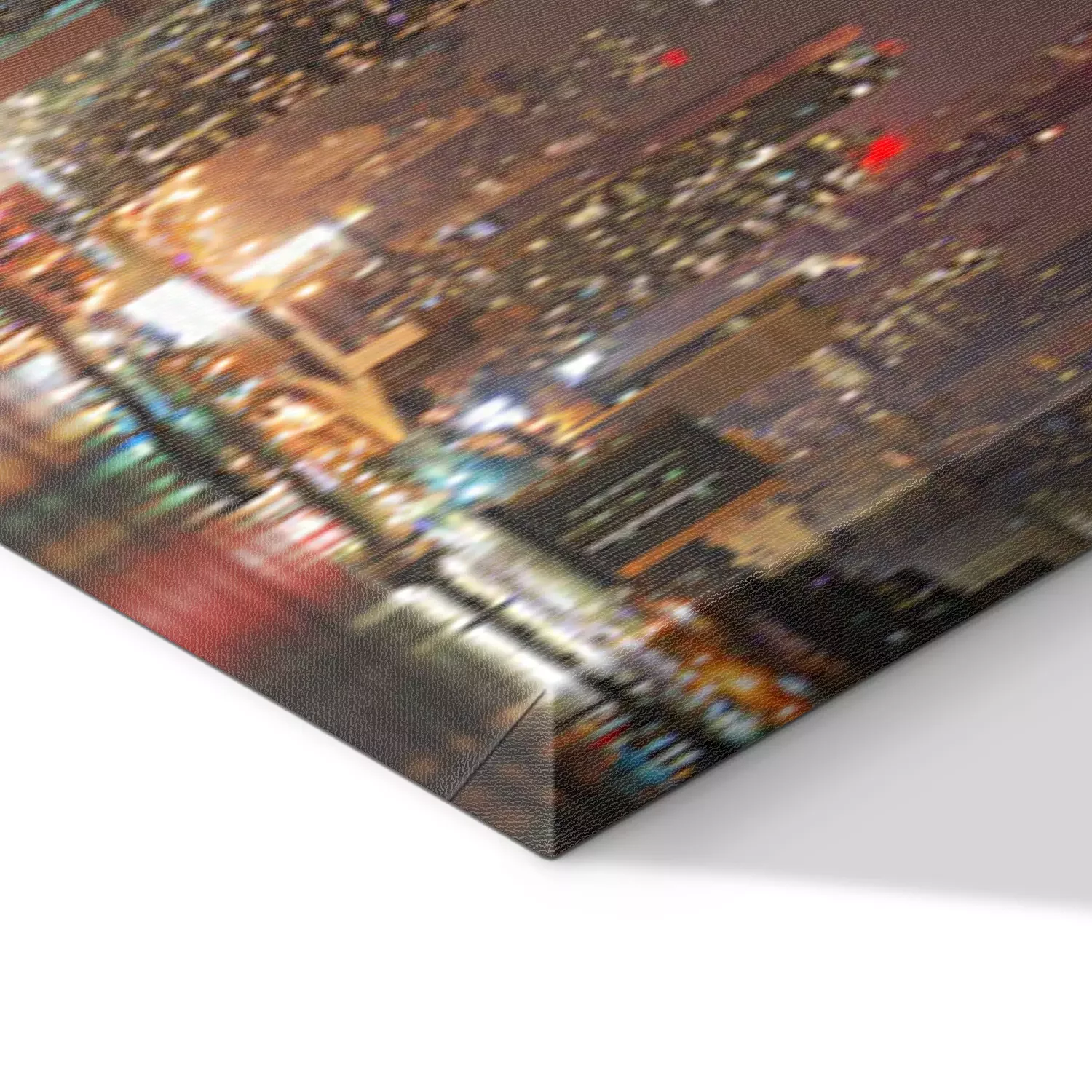 De print wordt aangebracht op hoogwaardig canvas dat op een schildersweefgetouw (spieraam) wordt gespannen. Omdat de print de zijranden bedekt, hoeft het ontwerp niet met een extra kader te worden omlijst. Wij raden ook composities aan die uit meerdere foto's bestaan en zo een coherente compositie vormen.