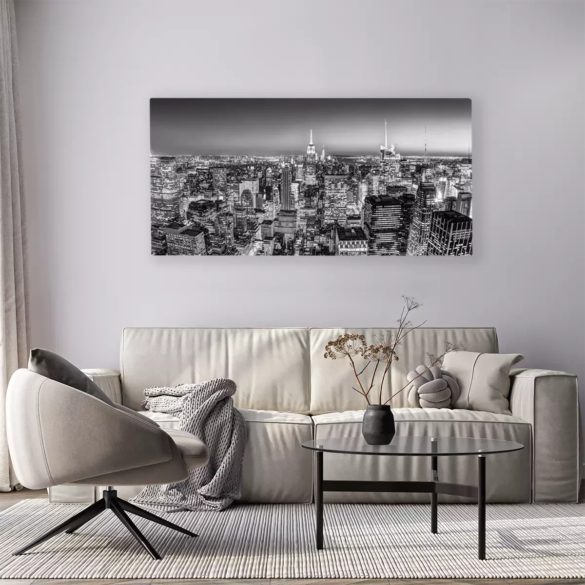 De print wordt aangebracht op hoogwaardig canvas dat op een schildersweefgetouw (spieraam) wordt gespannen. Omdat de print de zijranden bedekt, hoeft het ontwerp niet met een extra kader te worden omlijst. Wij raden ook composities aan die uit meerdere foto's bestaan en zo een coherente compositie vormen.