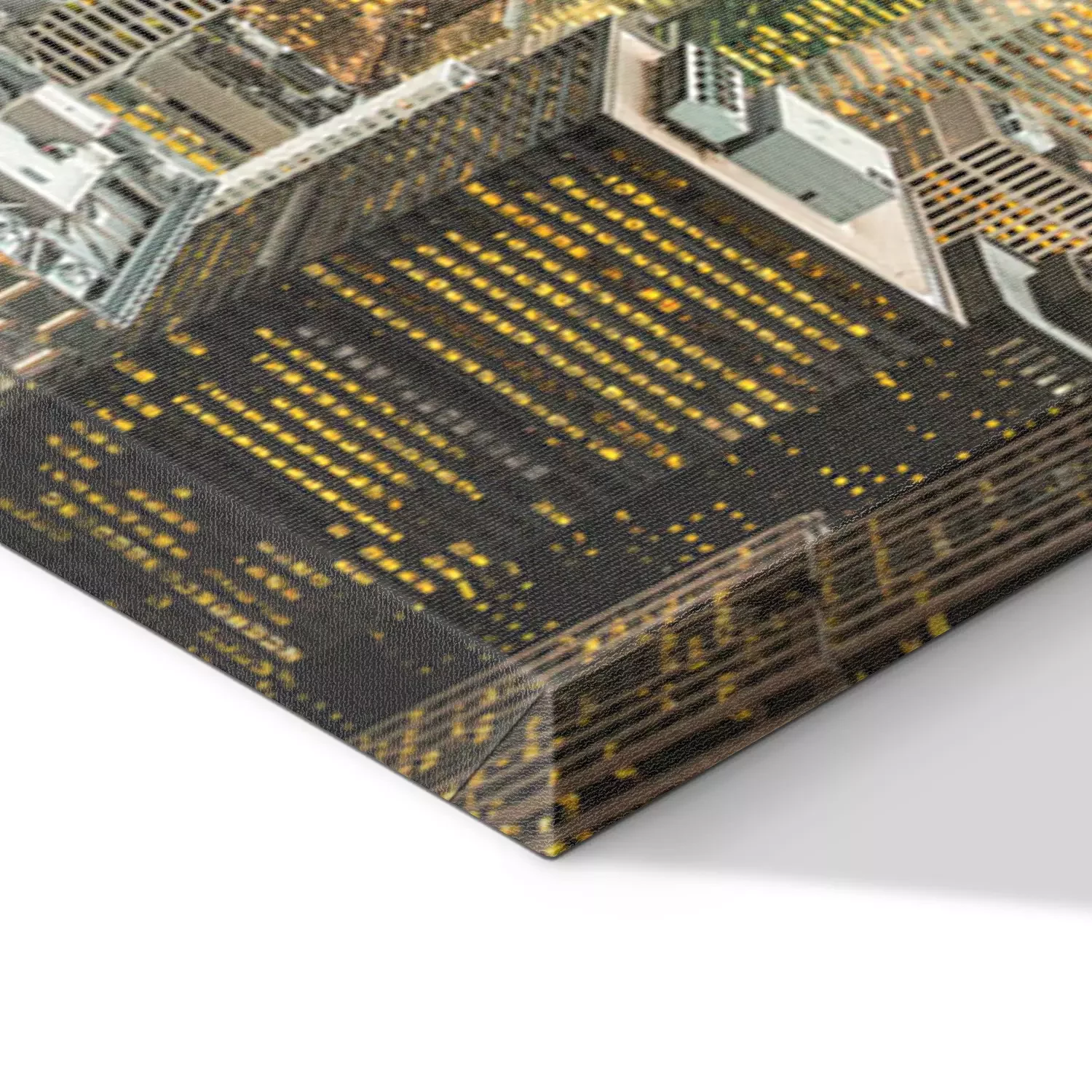 De print wordt aangebracht op hoogwaardig canvas dat op een schildersweefgetouw (spieraam) wordt gespannen. Omdat de print de zijranden bedekt, hoeft het ontwerp niet met een extra kader te worden omlijst. Wij raden ook composities aan die uit meerdere foto's bestaan en zo een coherente compositie vormen.