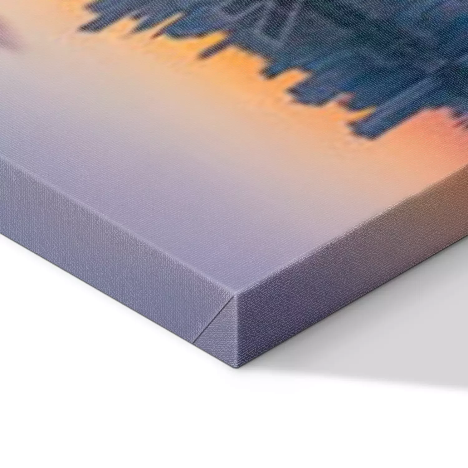 De print wordt aangebracht op hoogwaardig canvas dat op een schildersweefgetouw (spieraam) wordt gespannen. Omdat de print de zijranden bedekt, hoeft het ontwerp niet met een extra kader te worden omlijst. Wij raden ook composities aan die uit meerdere foto's bestaan en zo een coherente compositie vormen.