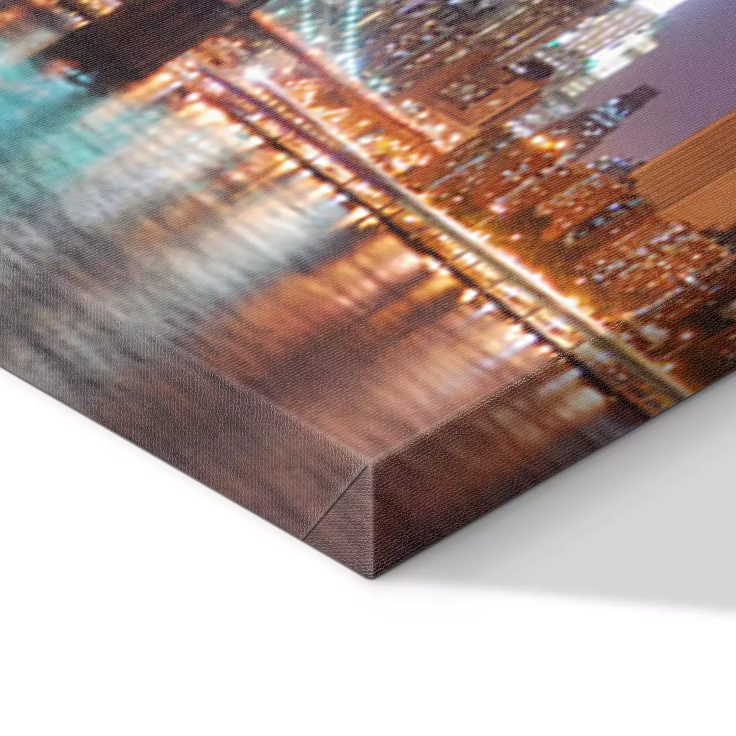De print wordt aangebracht op hoogwaardig canvas dat op een schildersweefgetouw (spieraam) wordt gespannen. Omdat de print de zijranden bedekt, hoeft het ontwerp niet met een extra kader te worden omlijst. Wij raden ook composities aan die uit meerdere foto's bestaan en zo een coherente compositie vormen.